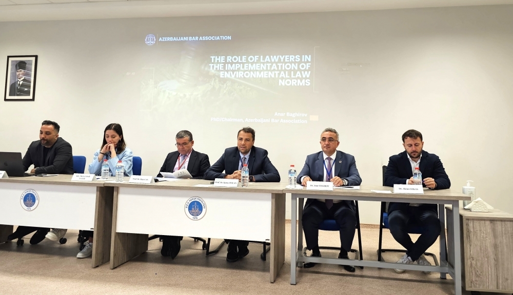 ARVK-nın sədri Anar Bağırov “Vəkillərin ekoloji hüquq normalarının tətbiqində rolu” mövzusunda çıxış edərək iqlim dəyişikliyinin təkcə ekoloji deyil, həm də hüquqi çağırış olduğunu bildirib. Sədr deyib ki, bu sahədə beynəlxalq sənədlər və konvensiyalar ətraf mühitin qorunmasında hüquqi öhdəliklər müəyyən edir. Diqqətə çatdırıb ki, Azərbaycanın Konstitusiyası və qanunvericiliyi sağlam ətraf mühitdə yaşamaq hüququnu təmin edir və bu istiqamətdə müasir hüquqi baza formalaşdırılıb. Ətraf mühitlə bağlı hüquqların effektiv təminatı və pozulmuş hüquqların bərpası üçün vəkillərin hüquqi bilik və bacarıqları həlledici əhəmiyyət daşıyır.