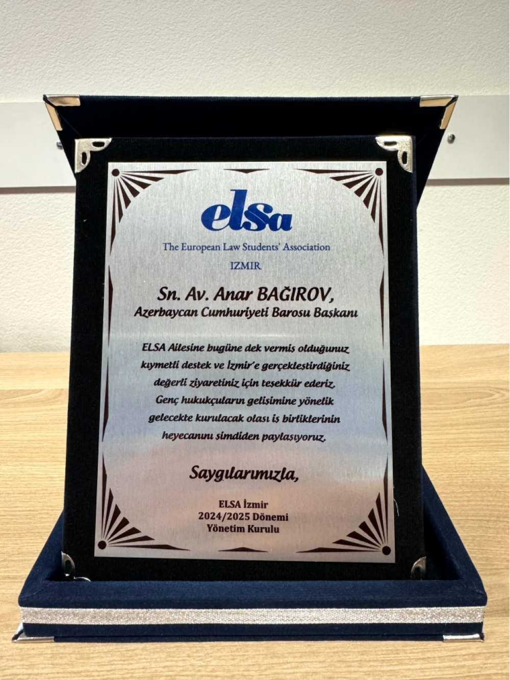 Aprelin 24-25-də Azərbaycan Respublikası Vəkillər Kollegiyasının (ARVK) sədri, hüquq elmləri üzrə fəlsəfə doktoru Anar Bağırovun rəhbərlik etdiyi nümayəndə heyəti Türkiyənin İzmir şəhərində yerləşən Dokuz Eylül Universitetinin dəvəti ilə “Ətraf mühit hüququnun müasir problemləri” mövzusunda keçirilən beynəlxalq konqresdə iştirak edib.