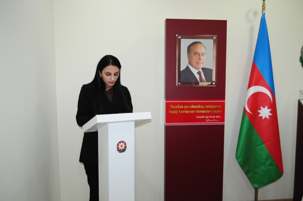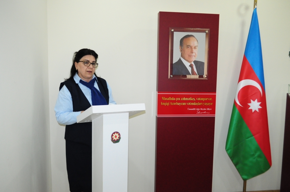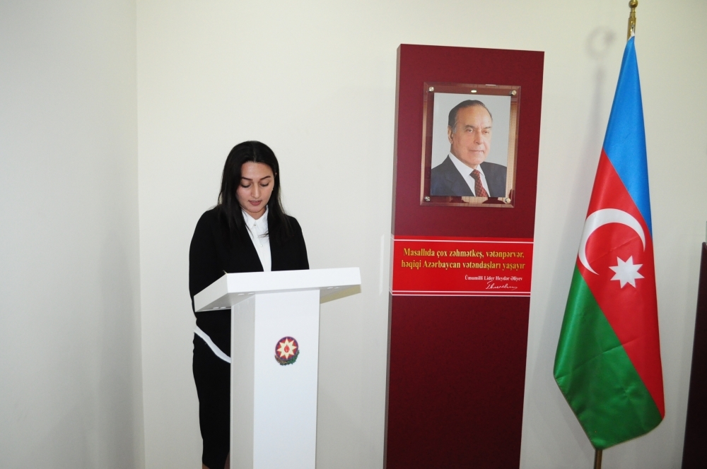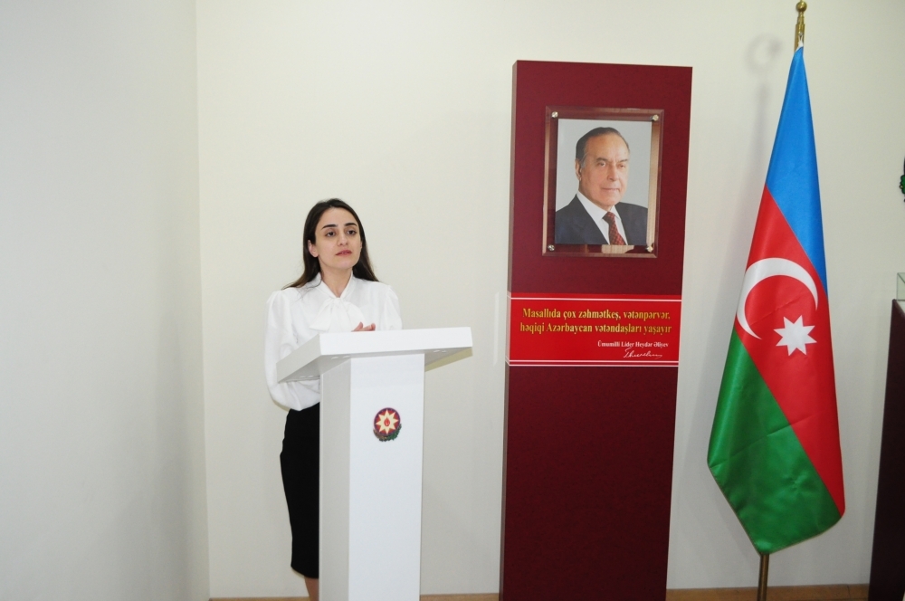 Masallı Tarix-Diyarşünaslıq Muzeyinin direktoru Əntiqə Tağıyeva çıxış edərək bildirdi ki, Ümummilli Liderin qadınlarla bağlı məsələlərin həlli üçün imzaladığı mühüm fərman və sərəncamlar qadınların hüquqlarının təminatı istiqamətində irəliyə doğru atılmış tarixi addımlar idi. Heydər Əliyev hər zaman vurğulayırdı ki, dövlət quruculuğunun bütün mərhələlərində xüsusi xidmətləri olan Azərbaycan qadınları ölkəmizdə ictimai-siyasi sabitliyin və əmin-amanlığın qorunması, milli dövlətçiliyimizin daha da möhkəmləndirilməsi üçün bu gün də var-qüvvələrini sərf edirlər. Azərbaycanda lider qadınlar, sahibkar qadınlar yetişir. İqtisadiyyatda, siyasətdə, elmdə, təhsildə, bir sözlə, bunu hər sahədə görmək olar. Hökumətdə, nazirliklərdə, Milli Məclisdə qadınlarımızın fəallığı artmaqda davam edir. Bu kimi müsbət nəticələrin əldə olunmasında Heydər Əliyevin hakimiyyətdə olduğu illərdə qadın hüquqlarının qorunması üçün bir çox qanunlar qəbul etməsi, fərman və sərəncamlar imzalaması, beynəlxalq təşkilatlara üzv olaraq mühüm sənədlərin ölkəmizdə tətbiq olmasını reallaşdırması tarixi gerçəkliklərdir. Azərbaycan qadınları cəmiyyətin dinamik inkişafı istiqamətində həyata keçirilən irimiqyaslı layihələrdə öz fəallığı ilə seçilirlər.