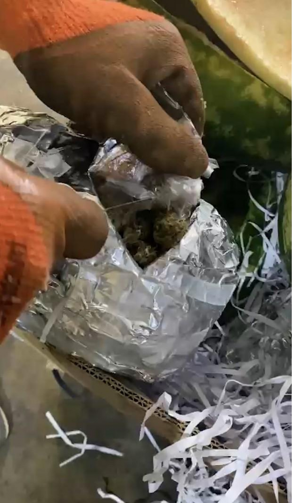 Əsaslı yoxlama zamanı kinoloji xidmət iti 42 qutuya reaksiya verib və həmin qutulardakı 84 ədəd qarpızın içərisindəki bağlamalardan falqaya bükülmüş formada, gömrük nəzarətindən gizlədilən, qablaşdırma ilə birlikdə ümumi çəkisi 63 kiloqram 417 qram narkotik vasitə - qurudulmuş marixuana aşkar edilib.