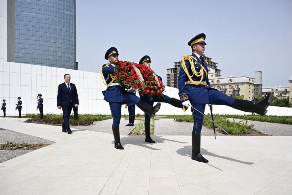 Belarusun Baş naziri parkdakı Zəfər abidəsinin önünə əklil qoyub.