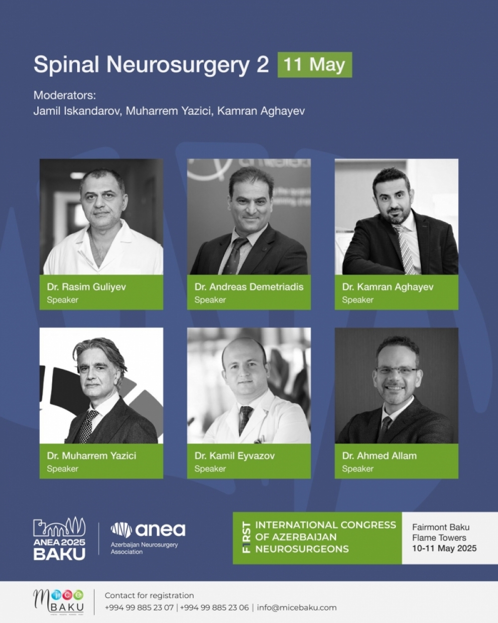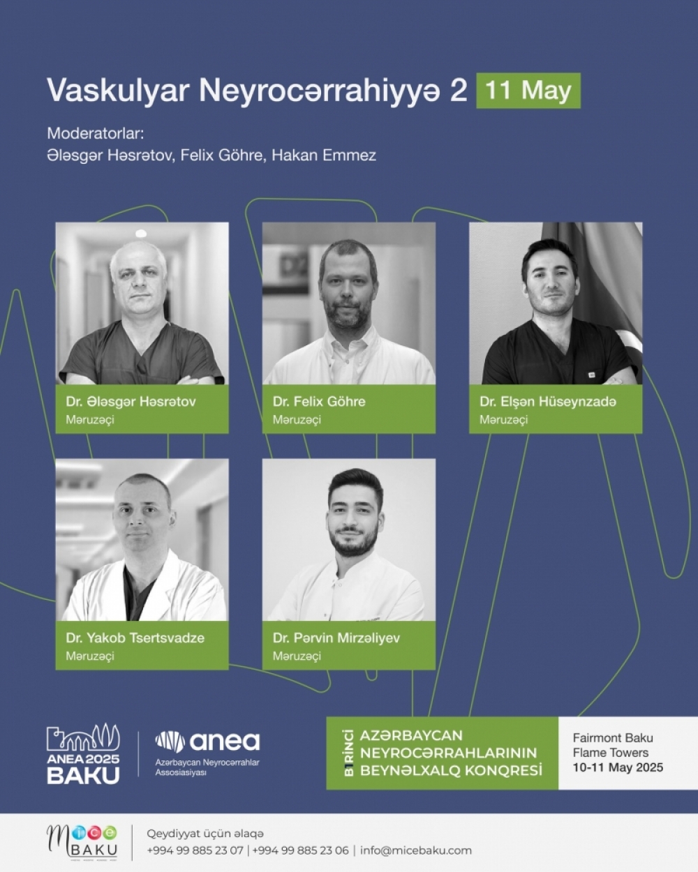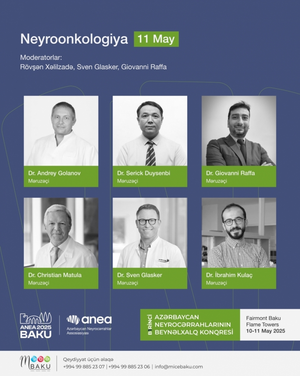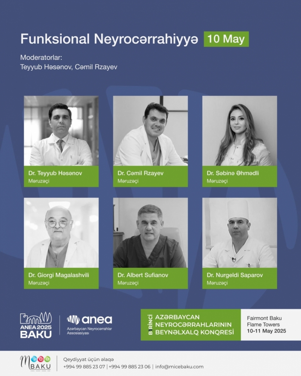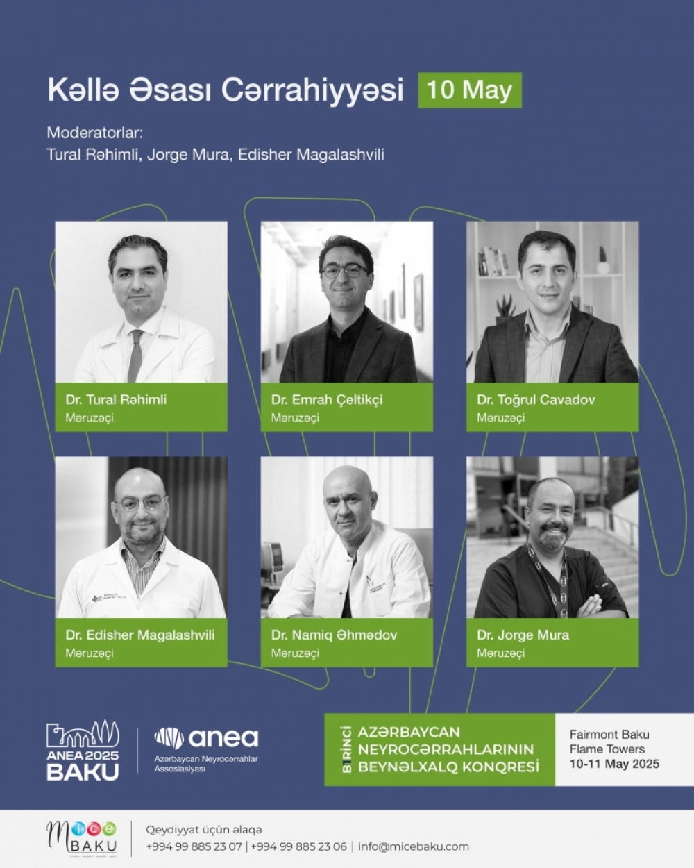 Mayın 10-11-də Bakıda Azərbaycanın ilk Beynəlxalq Neyrocərrahiyyə Konqresi keçiriləcək.