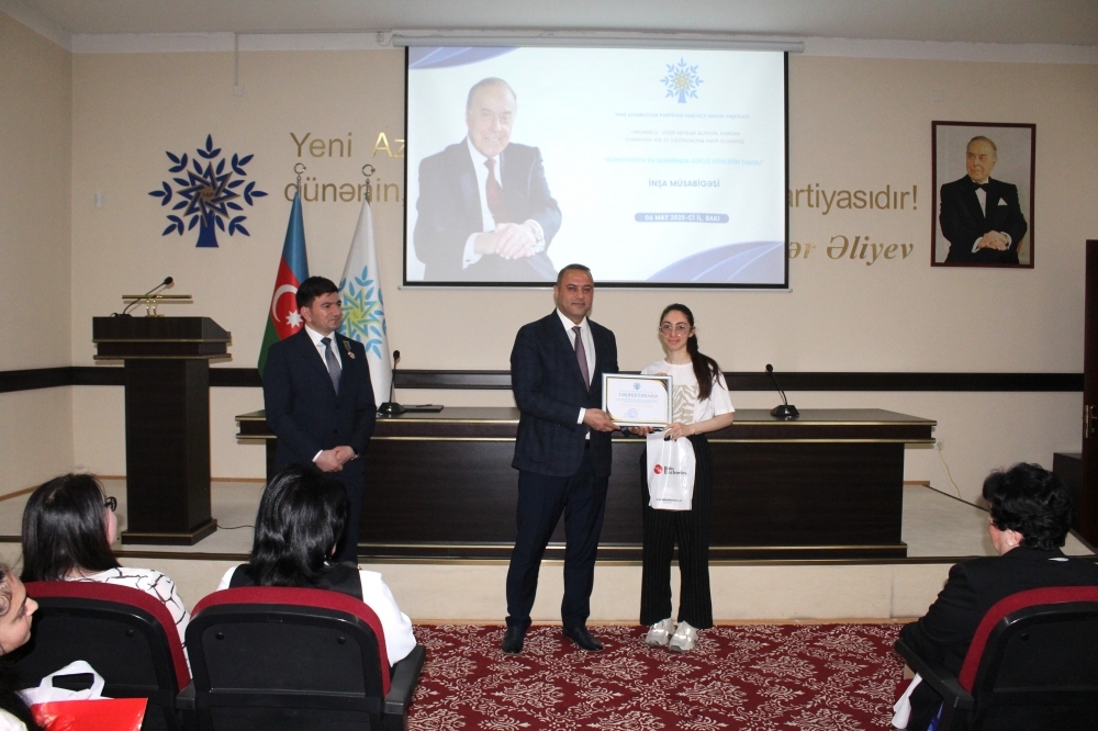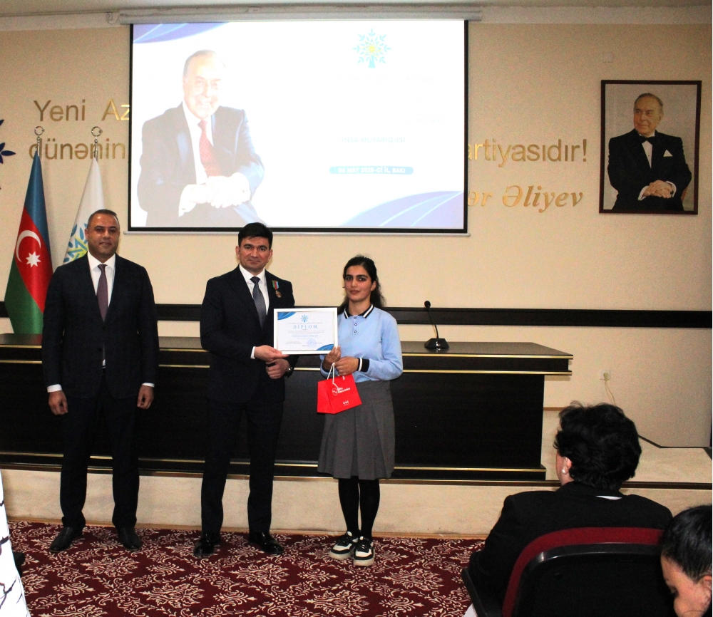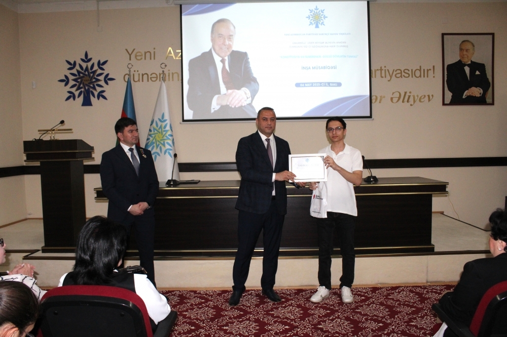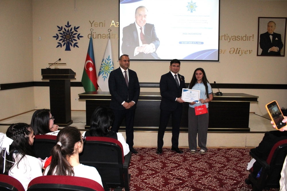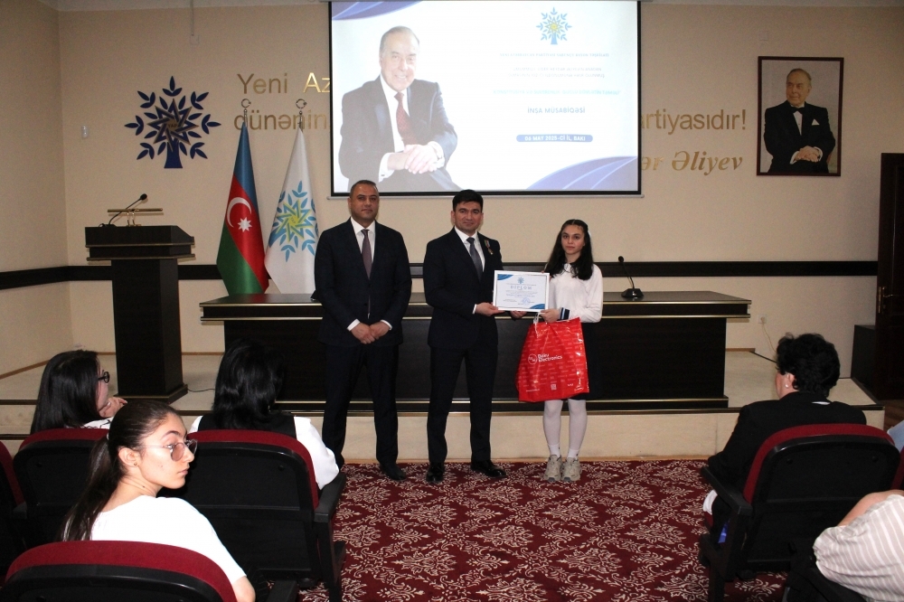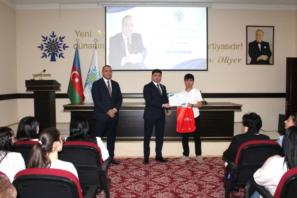 Əlavə olunub ki, bu cür müsabiqələrin keçirilməsinin də əsas məqsədi məhz dövlətin gənclər siyasətinə dəstək vermək və gənc intellektləri üzə çıxarmaqdır. 69 nəfərin iştirak etdiyi inşa müsabiqəsində birinci yerin qalibi 28 saylı tam orta məktəbin X sinif şagirdi Kərimova Roza Eldəniz qızı, ikinci yerin qalibi 113 saylı tam orta məktəbin X sinif şagirdi Şabiyeva Aysel Abiş qızı, üçüncü yerin qalibi isə 96 orta saylı tam məktəbin X sinif şagirdi İsmayılova Ayan Elsevər qızı olublar.
