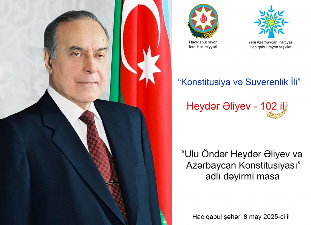 8 may 2025-ci il tarixində “Konstitusiya və Suverenlik ili” çərçivəsində Ulu Öndər Heydər Əliyevin anadan olmasının 102 illiyi münasibətilə Hacıqabul rayon İcra Hakimiyyəti və YAP Hacıqabul rayon təşkilatının birgə təşkilatçılığı ilə "Heydər Əliyev və Azərbaycan Konstitusiyası" adlı dəyirmi masa keçirildi