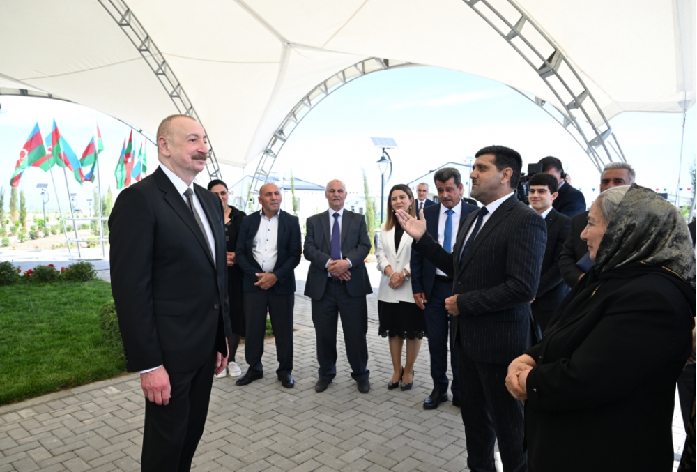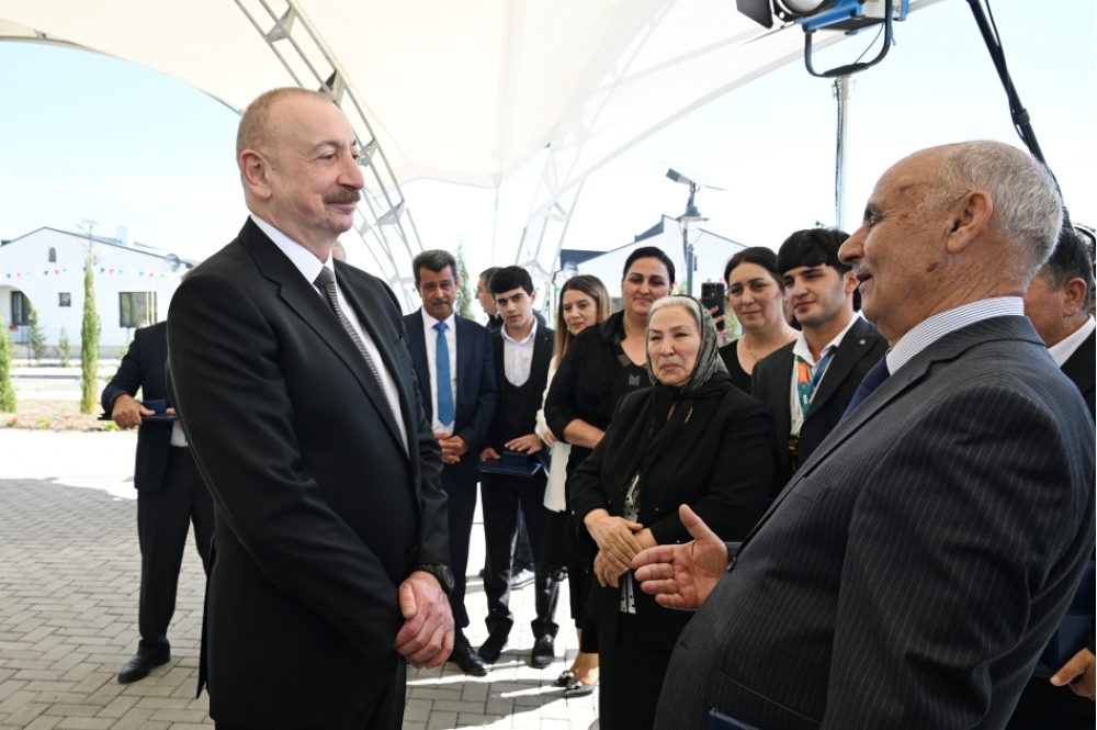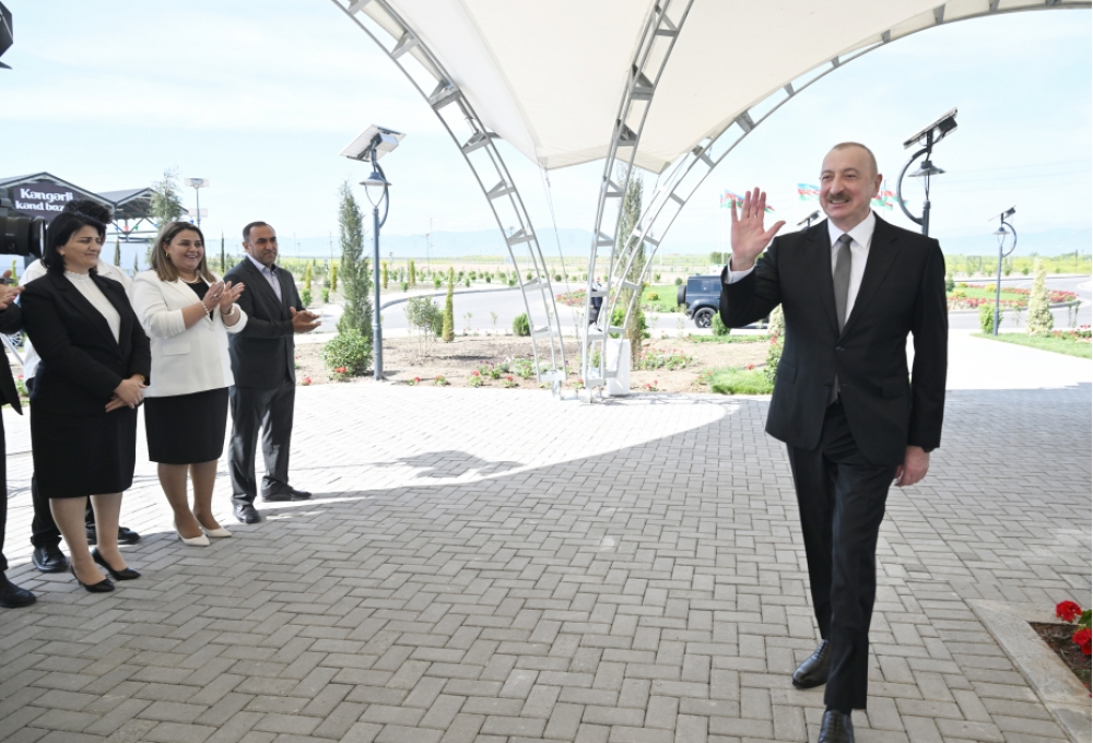 Bütün bu əzablı illər arxada qaldı. Siz indi öz doğma torpağınıza qayıdırsınız və qayıtmısınız, sizin üçün gözəl şərait yaradılıb. Kəngərli kəndi göz oxşayır. Kəndin bərpasının, yenidən qurulmasının birinci mərhələsidir, 292 ev hazırdır, sizin ixtiyarınıza verilir. İkinci mərhələdə daha çox evlər tikiləcək. Hər cür şərait var. Gözəl evlər, işıq, qaz, su, kanalizasiya sistemləri, məktəb, uşaq bağçası, market, tibb məntəqəsi, hətta bazar kompleksi - hər şey var. Əkin üçün yerlər ayrılacaq. İndi bəzi torpaqlarda artıq minatəmizləmə işləri başa çatıb. Mən göstəriş vermişəm, sakinlərə torpaq sahələri də veriləcək. Həyətyanı sahə də 12 sotdur. Orada da əkib-becərmək mümkündür. Yəni, həyat qayıdır, ədalət zəfər çalıb, ədalətin təntənəsidir. Biz bunun şahidiyik.