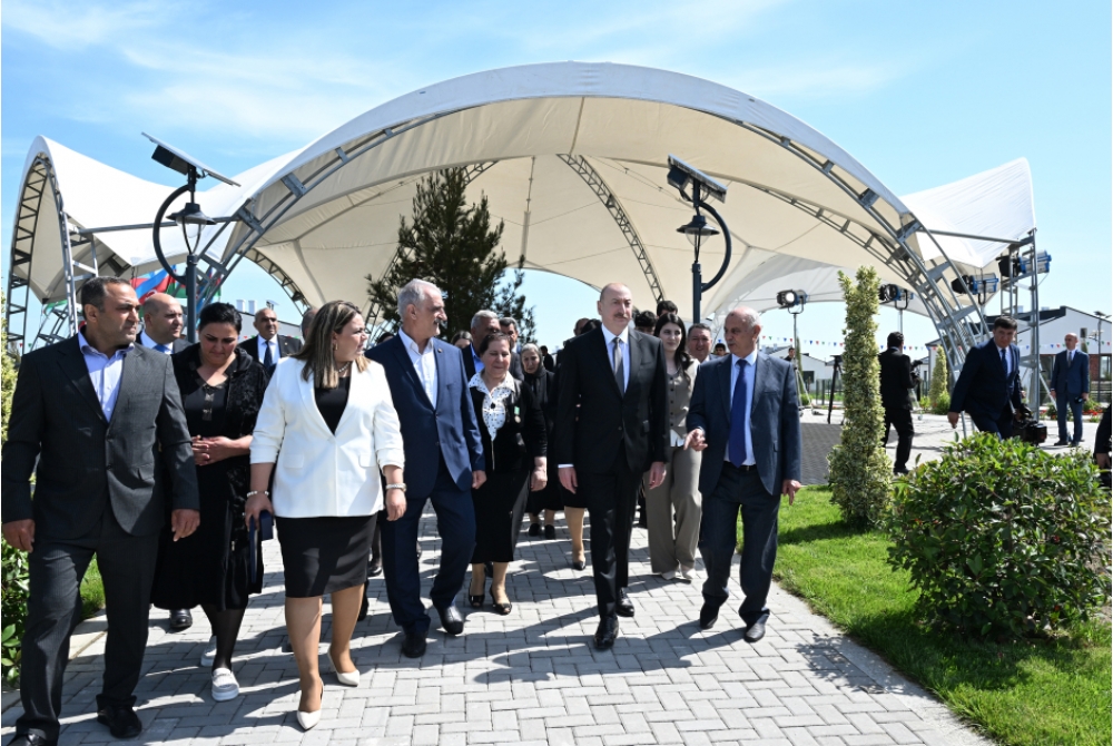 Prezident İlham Əliyev: Siz uzun illər ağır şəraitdə - ölkəmizin müxtəlif yerlərində yararsız evlərdə, yataqxanalarda, uşaq bağçalarında, müəyyən müddət isə çadır şəhərciklərində yaşamısınız. Bu gün isə gözəl kəndin timsalında yeniləşən Azərbaycanı görürük, bərpa olunan Qarabağı görürük. Göstəririk ki, bu torpaqların sahibi həmişə biz olmuşuq, bu gün də belədir. Ancaq bu torpağın sahibi bu torpaqda qurub-yaradır. Mənfur düşmən bütün bu bölgəni viran qoymuşdu. Ağdam rayonunda bir dənə də salamat bina qalmamışdır. Şəhər, bütün kəndlər tamamilə yerlə-yeksan edilmişdir. Təkcə Ağdamda yox, demək olar ki, o vaxt işğal altında olan bütün torpaqlarda Ermənistan dövləti tərəfindən məqsədyönlü siyasət aparılırdı ki, heç vaxt azərbaycanlılar bu bölgəyə qayıtmasınlar. Onlar istəyirdilər bu torpaqları əbədi işğal altında saxlasınlar. Onlara mənəvi və maddi dəstək verən bəzi ölkələr də onlarla həmrəy idi. Amma onlar bir şeyi unudurdular ki, Azərbaycan xalqı heç vaxt işğalla barışmayacaq, Azərbaycan vətəndaşları heç vaxt öz doğma torpaqlarını unutmayacaq və Azərbaycan dövləti ayağa qalxacaq, güc toplayacaq və düşməni öz torpağından qovacaq. Bunu onlar hesablaya bilməmişdilər.