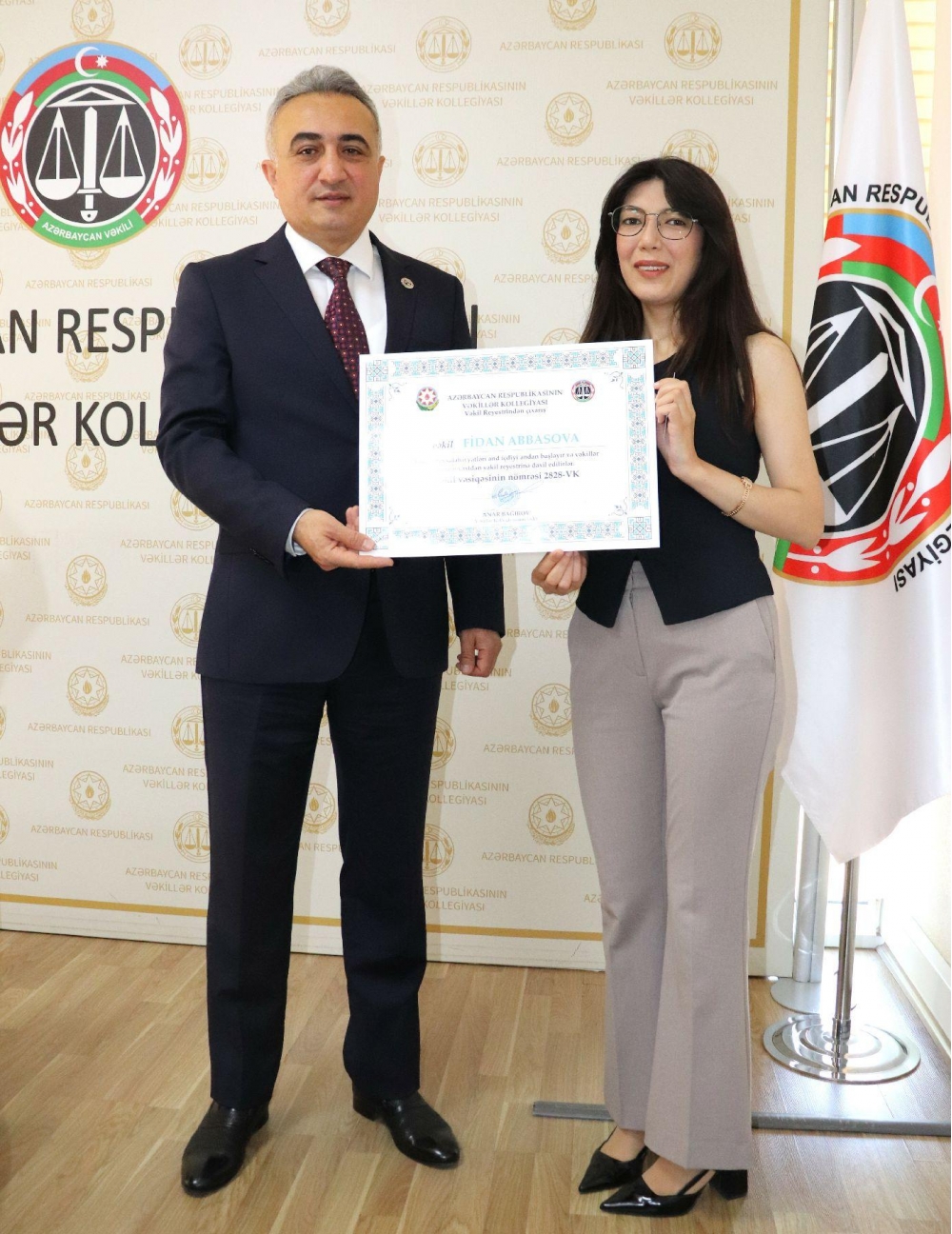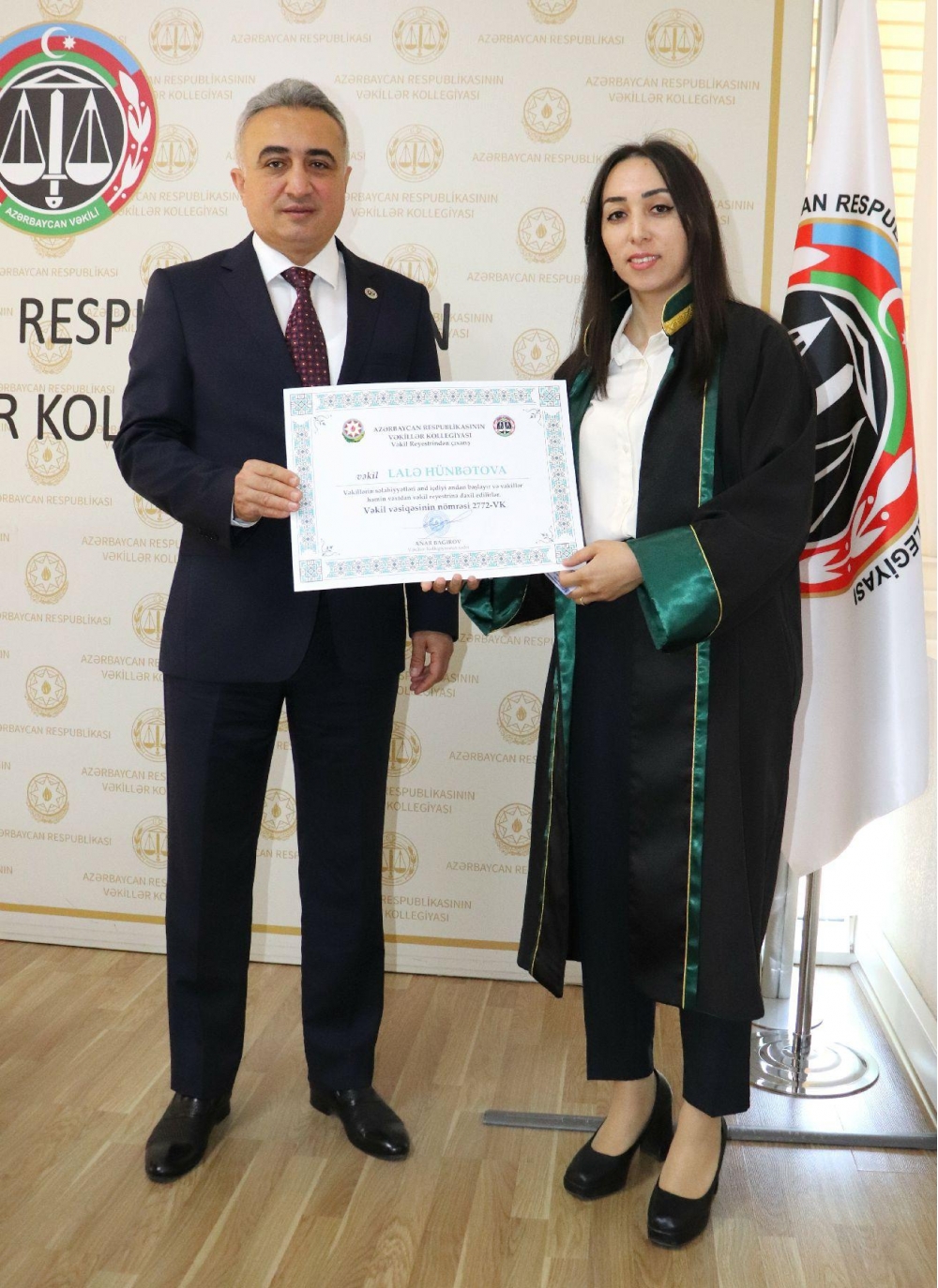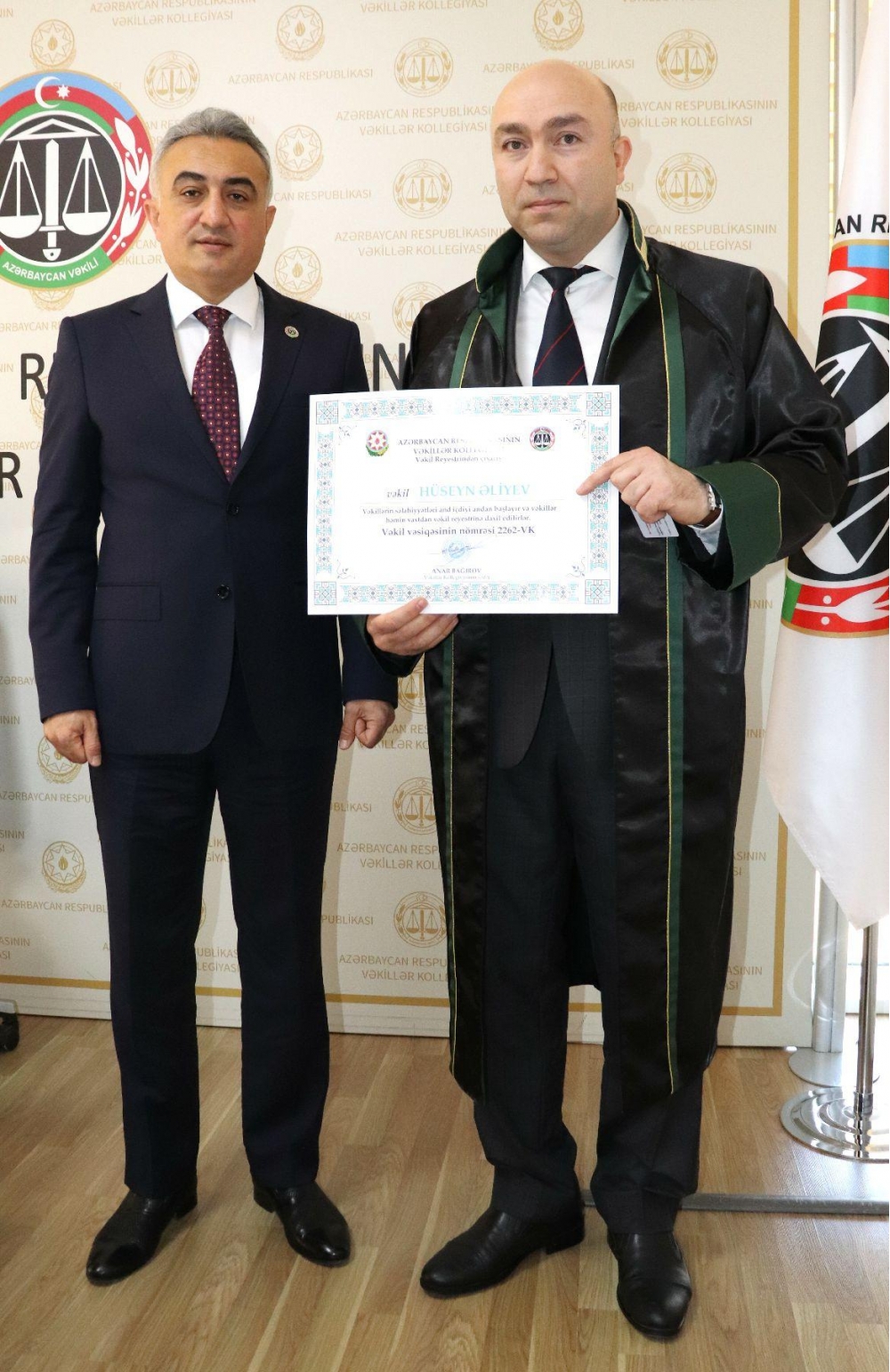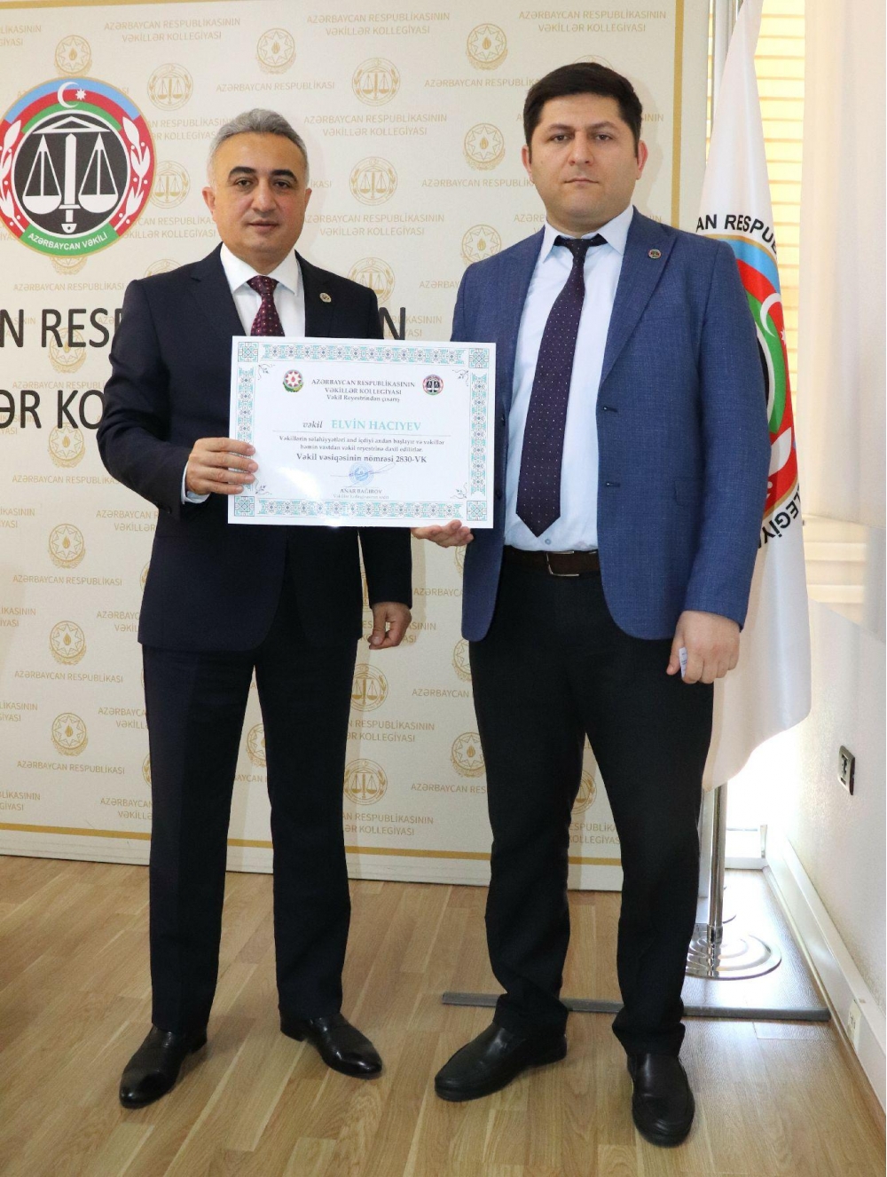 Eyni zamanda dövlət qulluğuna keçdiklərinə görə vəkillik fəaliyyəti dayandırılmış iki vəkilin fəaliyyətinin bərpa edilməsi ilə bağlı müraciətlərinə baxılıb. Rəyasət Heyətinin qərarı ilə onların vəkillik fəaliyyətinin yenidən bərpası təsdiqlənib və vəsiqələr təqdim olunaraq gələcək fəaliyyətlərində uğurlar arzulanıb.