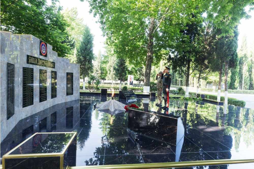 Səfər çərçivəsində general-polkovnik V.Eyvazov DİN Daxili Qoşunlarının Bərdədə yerləşən hərbi hissəsinə gedib, orada ölkəmizin suverenliyi və ərazi bütövlüyü uğrunda şəhid olmuş hərbi qulluqçuların xatirəsinə ucaldılmış abidəni ziyarət edib.