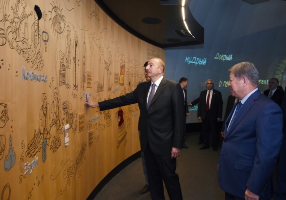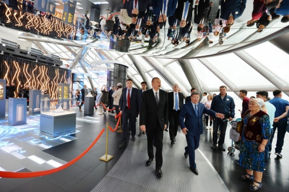 Sonra Azərbaycan Prezidenti İlham Əliyev Qazaxıstan milli pavilyonu - “Nur Alem” ilə tanış oldu.