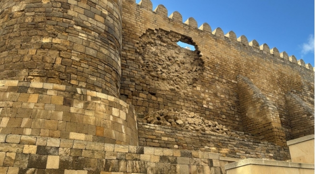 İçərişəhərdə tarixi qala divarının bir hissəsində aşınma qeydə alınıb, bərpa işlərinə başlanılıb
