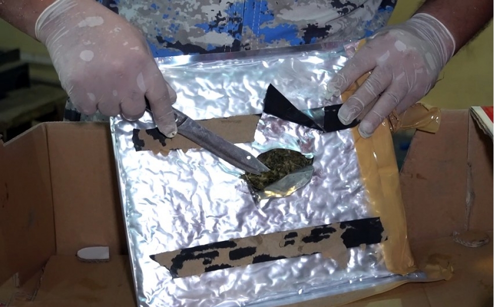 Kinoloji xidmət itinin tətbiqi ilə həyata keçirilən yoxlama zamanı dörd ədəd paletdəki yeşiklərdən üzəriləri kahı yükü ilə örtülərək gömrük nəzarətindən gizlədilən 76 ədəd bağlamada, qablaşdırılmaları ilə birlikdə ümumi təqribi çəkisi 70 kiloqram 410 qram narkotik vasitə - marixuana aşkar edilib.
