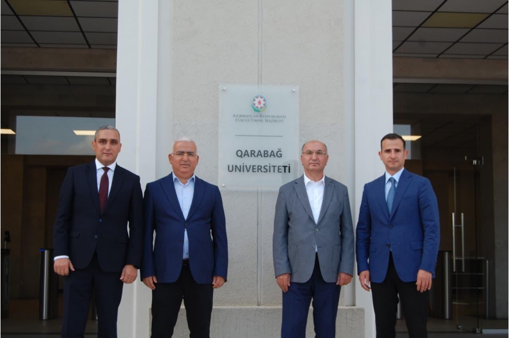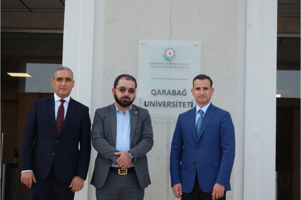 Daha sonra səfər Xankəndi şəhərində davam edib. Zəfər meydanı ilə tanışlıqdan sonra qonaqlar Qarabağ Universitetini ziyarət edib və Universitetin rektoru Şahin Bayramov tərəfindən qarşılanaraq onlara təhsil ocağı barədə məlumat verilib, ali təhsil müəssisəsində aparılan işlər, qarşıda duran vəzifələr haqqında ətraflı danışılıb.