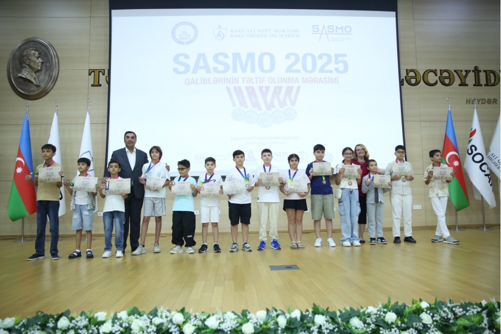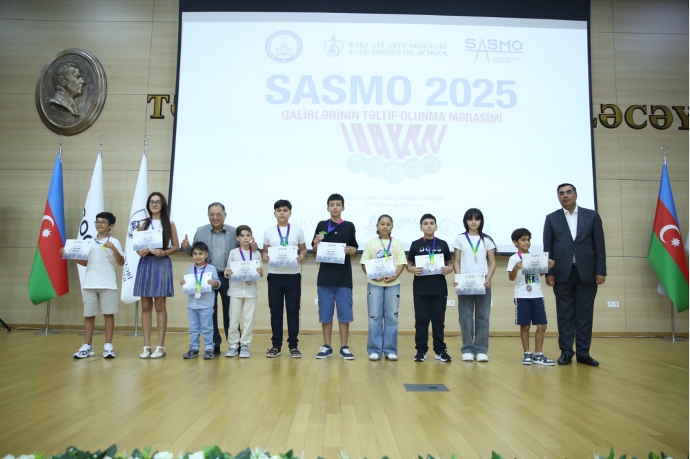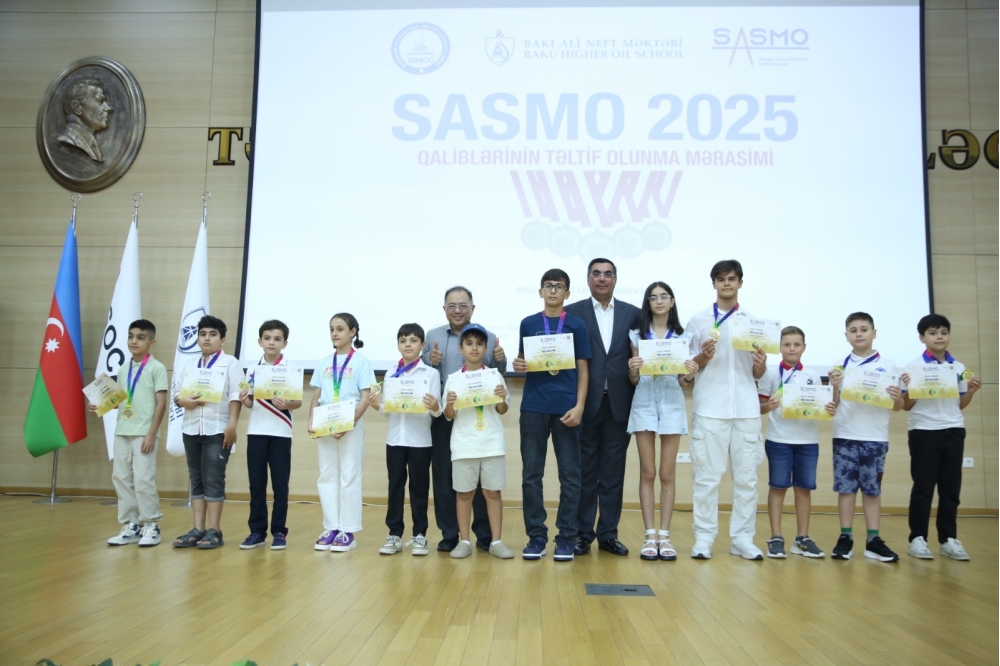 Dünyanın ən nüfuzlu riyaziyyat olimpiadalarından biri olan SASMO (Singapore and Asian Schools Math Olympiad) qaliblərinin medal təqdimetmə mərasimi Bakı Ali Neft Məktəbində keçirilib.