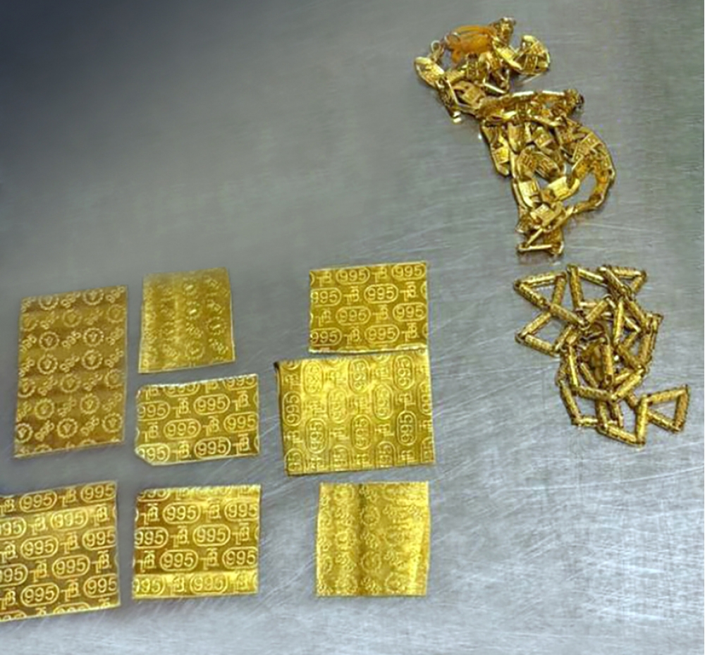 Bakı-Dubay aviareysi ilə gedən Azərbaycan Respublikası vətəndaşı gömrük nəzarət zonasından keçərkən onun ayaqqabısının içərisində və üzərində gizlədilmiş, gömrük orqanlarına bəyan olunmayan 8 ədəd qızıl lövhə və 2 ədəd boyunbağı, ümumilikdə 614 qram qızıl-zinət əşyaları aşkar edilib.