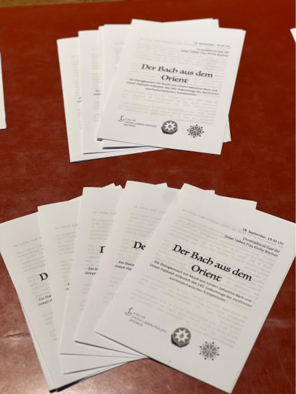 “İki sahil” xəbər verir ki, Azərbaycanın Almaniyadakı səfirliyinin və Almaniyadakı Azərbaycan Mədəniyyət Mərkəzinin təşkilatçılığı ilə keçirilən tədbir Bremendə tarixi-memarlıq baxımından əhəmiyyətli “Unser Lieben Frauen Kirche - Christophus” salonunda baş tutub.