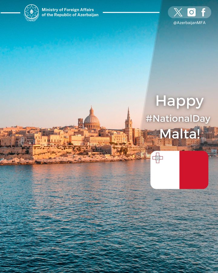 Azərbaycanın Xarici İşlər Nazirliyi (XİN) Maltanı müstəqillik günü münasibətilə təbrik edib.