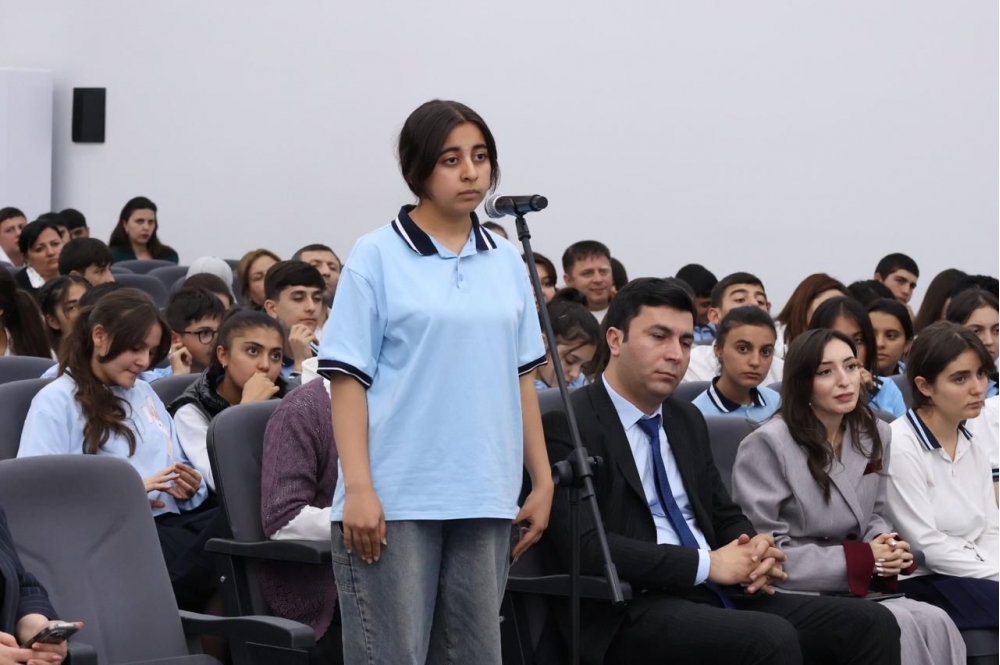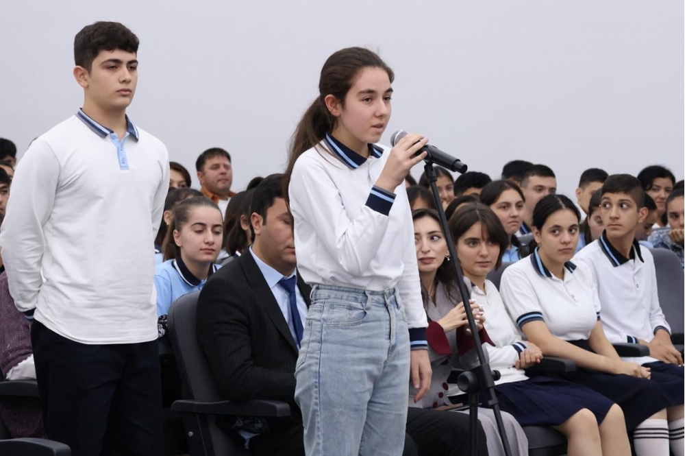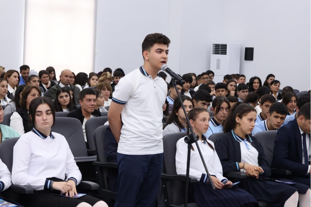 Görüşün interaktiv bölməsində şagirdlər fəal iştirak edərək BSU-da təhsil almaq, nümunəvi şagird necə olmalıdır, xarici mübadilə proqramları bağlı onları maraqlandıran sualları ünvanlayaraq geniş fikir mübadiləsi aparıblar.