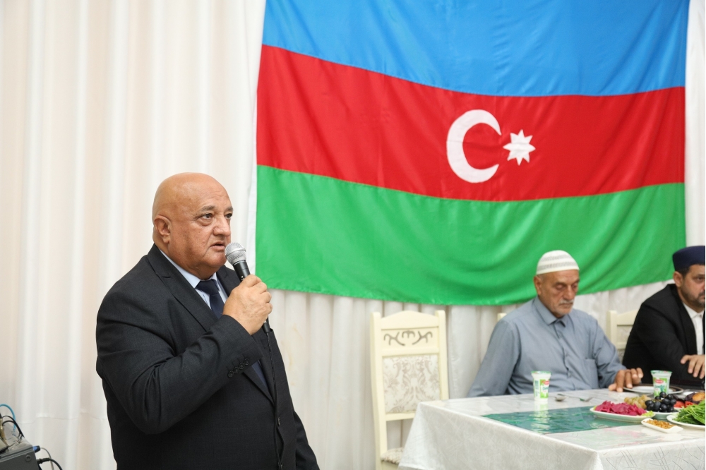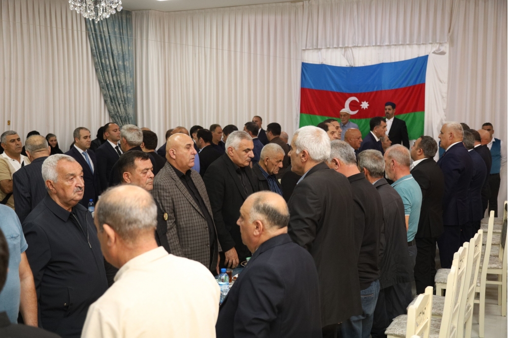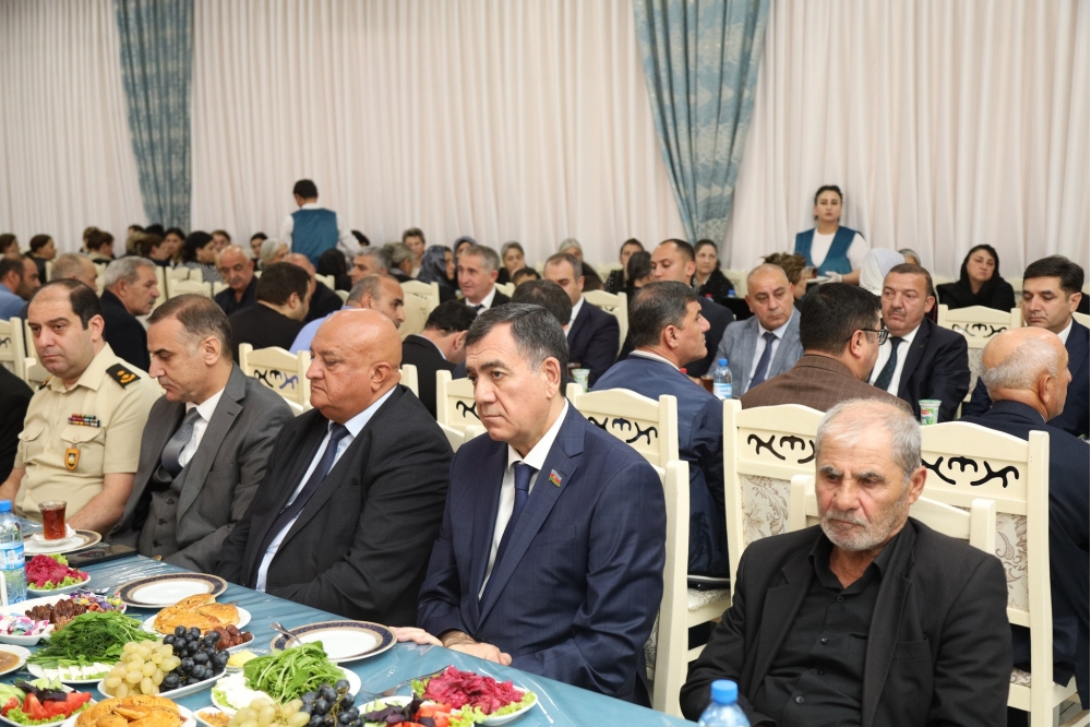 Daha sonra rayon İcra Hakimiyyəti tərəfindən şəhidlərin xatirəsinə ehsan süfrəsi təşkil olunub. Mərasimdə rayon İcra Hakimiyyətinin başçısı Rafiq Quluyev çıxış edərək 2020-ci ilin 27 sentyabr tarixində Ali Baş Komandanın rəhbərliyi ilə rəşadətli Azərbaycan Ordusunun işğal olunmuş torpaqlarımızın geri alınması məqsədilə zəfər yürüşünə başlaması ilə tariximizin şanlı səhifələrinin yazıldığını, bu günün Anım Günü kimi qeyd edilməsinin şəhid ruhlarına, şəhidlərin doğmalarına ali ehtiramın göstəricisi olduğunu diqqətə çatdırıb. Rafiq Quluyev şəhidlərin ailə üzvlərinə və yaxınlarına Allahdan səbir diləyib və bildirib ki, şəhidlərin qanı yerdə qalmayıb. Azərbaycanın qəhrəman ordusu onların qisasına layiqincə alıb. Qəhrəman hərbçilərimizin şücaəti, rəşadəti hesabına, şəhidlərimizin qanı-canı bahasına bütün dünyanın Azərbaycanın şanlı qələbəsinin şahidi olduğunu, vətənimizin ərazi bütövlüyünü bərpa olunduğunu, üçrəngli bayrağımızın işğaldan azad edilən torpaqlarımızda dalğalandığını, bütün bunlara görə qalib Ali Baş Komandana, şəhidlərimizə və qazilərmizə minnətdar olduğumuzu vurğulayıb. RİH başçısı bu gün işğaldan azad olunmuş torpaqlarda geniş vüsət almış bərpa və yenidənqurma işlərinin sürətlə aparıldığını, soydaşlarımızın öz yurdlarına döndüyünü və Qarabağda həyatın yenidən canlandığını vurğulayıb.