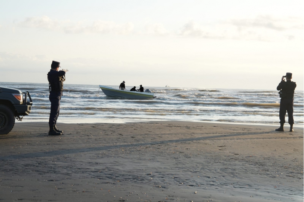 Azərbaycan Respublikası ərazi sularında və sahilboyu ərazidə həyata keçirilmiş əməliyyat-qoşun tədbirləri nəticəsində üzmə vasitəsinin saxlanılması məqsədilə “Dövlət sərhədi haqqında” Azərbaycan Respublikası Qanununun tələblərinə uyğun olaraq xəbərdarlıq atəşi açılmış, üzmə vasitəsi Xəzər dənizinin Xaçmaz rayonu ərazisində sahilə yan almağa məcbur edilmişdir.