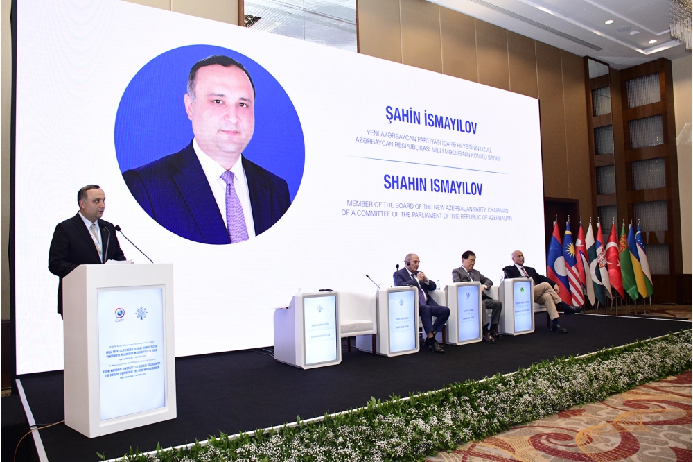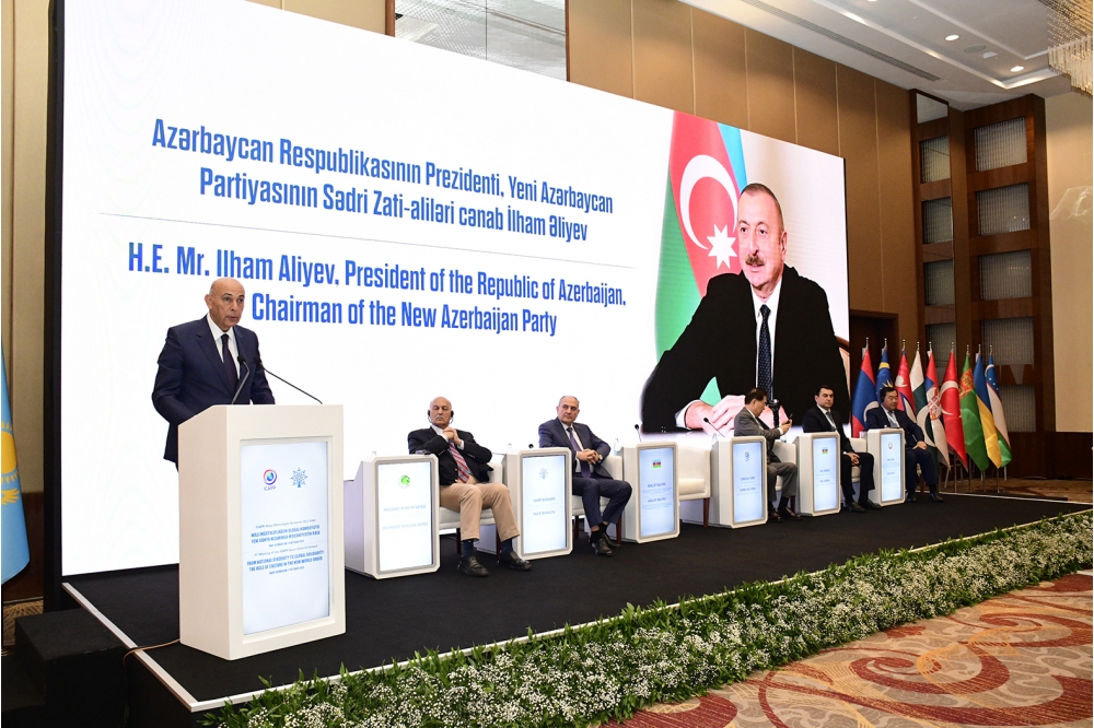 YAP Sədrinin müavini vurğulayıb ki, müasir dövrdə beynəlxalq münasibətlər sistemində ciddi geostrateji dəyişikliklər baş verməkdədir. Onun sözlərinə görə, qlobal kataklizmlər, çoxsaylı təhdid və çağırışlar fonunda yeni dünya nizamına transformasiya məsələsi aktual müzakirə predmetinə çevrilmişdir: “Dünyada hərbi-siyasi konfrontasiyaların, humanitar böhranların, dini və etnik müstəvidə bir çox ziddiyyətlərin yaşandığı bir dönəmdə müxtəlif mədəniyyətlərin daşıyıcısı olan xalqlar arasında sabitlik və tərəqqi naminə dialoq prosesi ümumbəşəri dəyərlərin qorunması və ölkələrin təhlükəsizliyi baxımından müstəsna əhəmiyyət kəsb edir”.