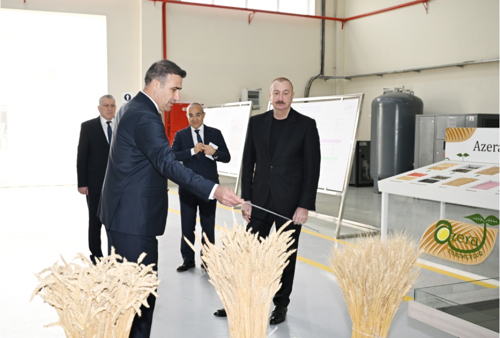 Azərbaycan Respublikasının Prezidenti İlham Əliyev oktyabrın 28-də Sabirabad Sənaye Məhəlləsində “Azera Toxumçuluq” Məhdud Məsuliyyətli Cəmiyyətinin (MMC) toxum istehsalı müəssisəsinin fəaliyyəti ilə tanış olub.