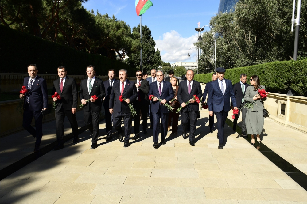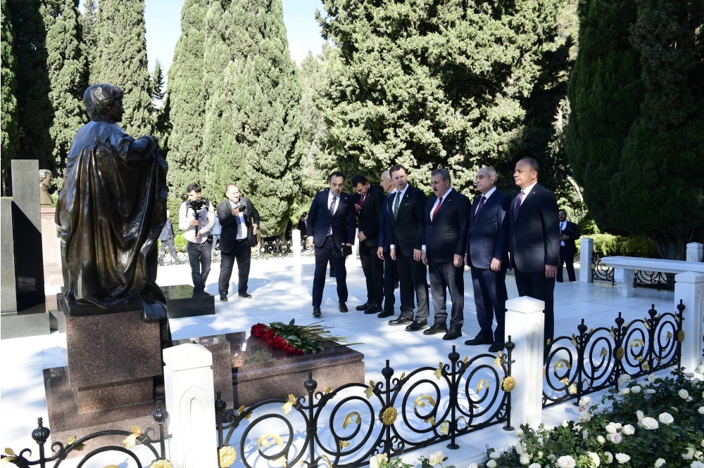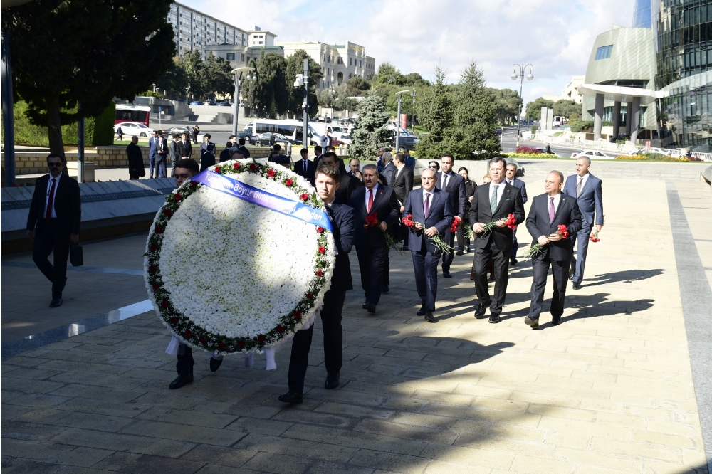 Daha sonra “Türk şəhidliyi” abidəsi ziyarət edilib. Azərbaycanın istiqlaliyyəti uğrunda canlarından keçən, Azərbaycan-Türkiyə qardaşlığının əbədiliyini və sarsılmazlığını əks etdirən bu məzarlıqda uyuyan qəhrəman türk qardaşlarımızın xatirəsi anılıb, abidənin önünə əklil qoyulub, gül dəstələri düzülüb.
