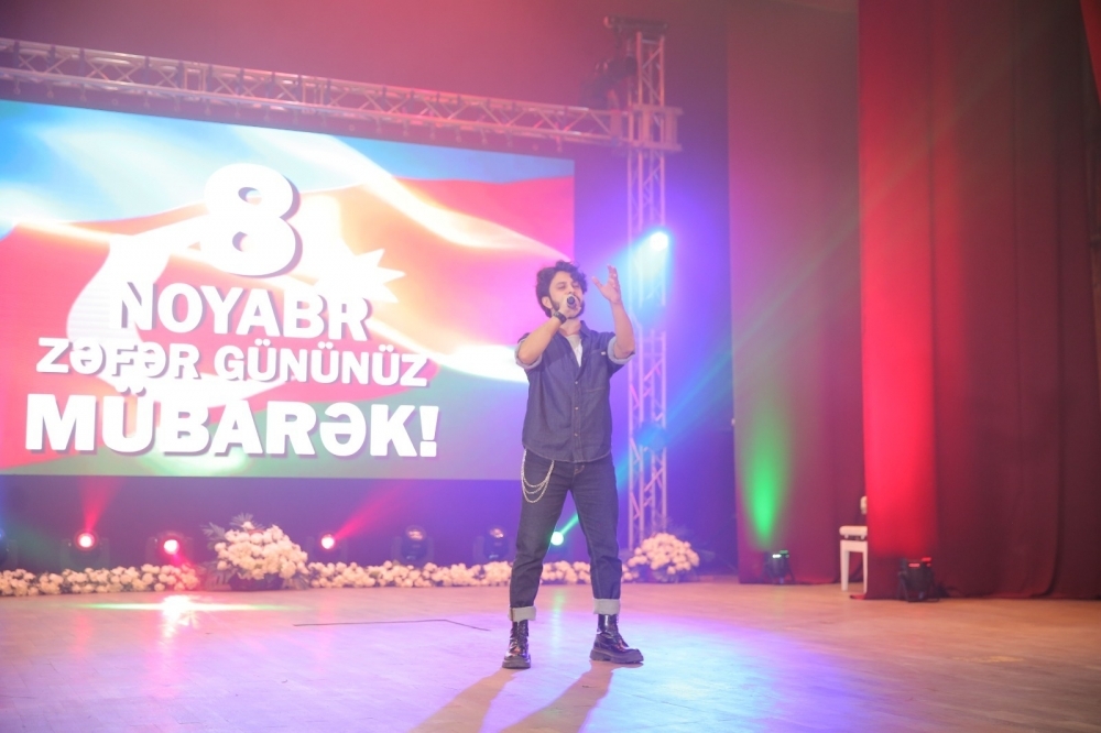 Daha sonra tədbirin rəsmi hissəsinə keçid edilərək Dövlət Himni səsləndirilib və ölkəmizin ərazi bütövlüyü və suverenliyi uğrunda mübarizədə canlarını qurban verən şəhidlərimizin xatirəsi bir dəqiqəlik sükutla yad edilib. Sonra tədbirdə şanlı zəfərimizə, tarixi qələbəmizə həsr olunmuş “Qızıl payız” adlı sənədli film nümayiş etdirilib. Tədbirdə giriş sözü ilə çıxış edən Rayon İcra Hakimiyyətinin başçısı Elşən Salahov “8 Noyabr – Zəfər Günü” ilə bağlı tədbir iştirakçılarını təbrik edərək 44 günlük Vətən Müharibəsinin Azərbaycanın tarixinə qızıl hərflərlə əbədi yazıldığını, bu qələbənin Azərbaycan Respublikasının Prezidenti, Müzəffər Ali Baş Komandan cənab İlham Əliyevin qətiyyəti, siyasi iradəsi, yenilməz ordumuzun şücaəti, qəhrəmanlığı, qorxmaz, cəsur əsgərlərimizin canı, qanı bahasına, xalqımızın birliyi hesabına qazanıldığını qeyd edib. Həmçinin, konstitusiya quruluşunun bərpa edilməsi məqsədilə Qarabağ bölgəsində lokal xarakterli antiterror tədbirlərinin uğurla başa çatması nəticəsində Azərbaycanın öz suverenliyini bir daha bərpa etdiyini vurğulayıb.