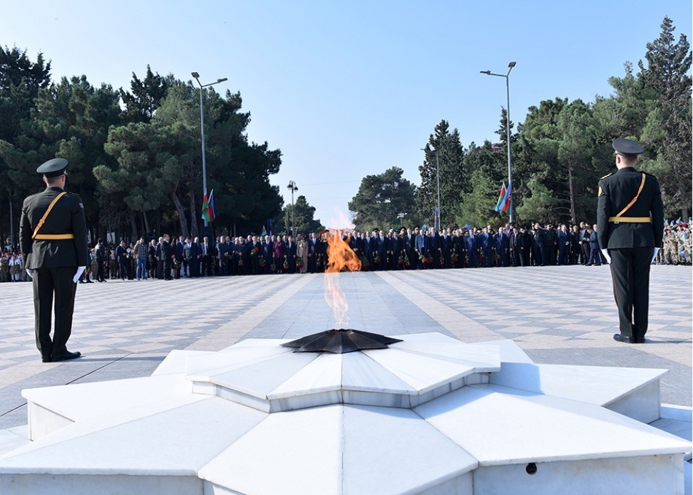 Əvvəlcə Azərbaycanın Dövlət Himni səsləndirilib, şəhidlərin əziz xatirəsi bir dəqiqəlik sükutla yad edilib.