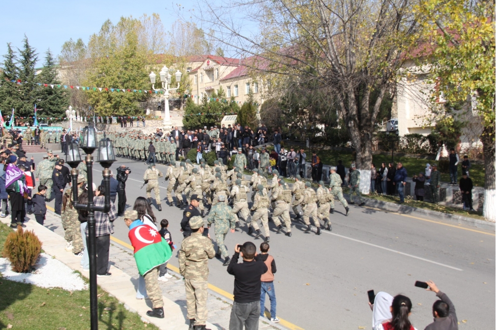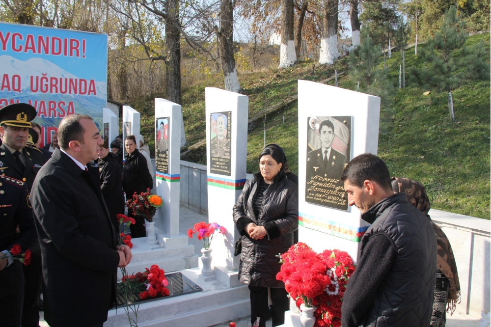 Sonra hərbçilərin də iştirakı ilə Daşkəsən Şəhidlər Xiyabanına yürüş təşkil edilib. Şəhid məzarları ziyarət olunaraq gül dəstələri düzülüb, dualar oxunub, Şəhidlər Xiyabanındakı əbədi məşəlin önünə əklil qoyulub.