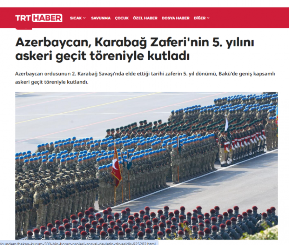 Türkiyənin və Şimali Kipr Türk Cümhuriyyətinin aparıcı informasiya agentlikləri, televiziya kanalları, qəzetləri və xəbər portalları Vətən müharibəsində Qələbənin beşinci ildönümünə həsr olunmuş Hərbi paradla bağlı mövzunu geniş işıqlandırıblar.