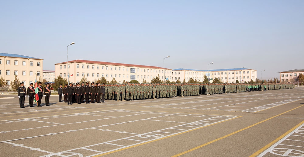 Hərbi orkestrlərin müşayiəti ilə döyüş bayraqları təntənəli surətdə sıra meydanlarına gətirildikdən sonra tədbirlər açıq elan olunub.