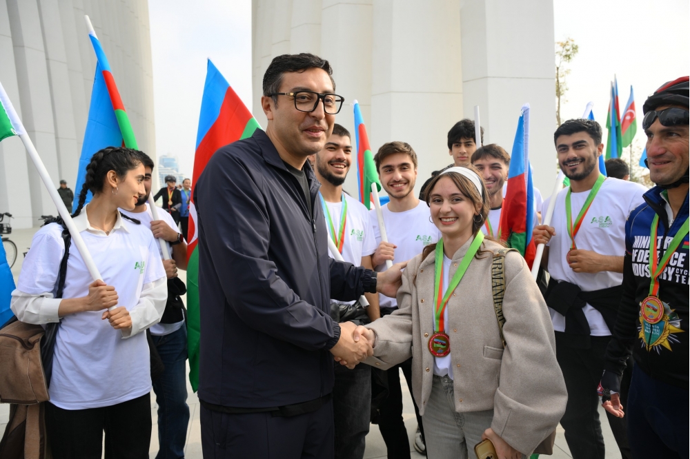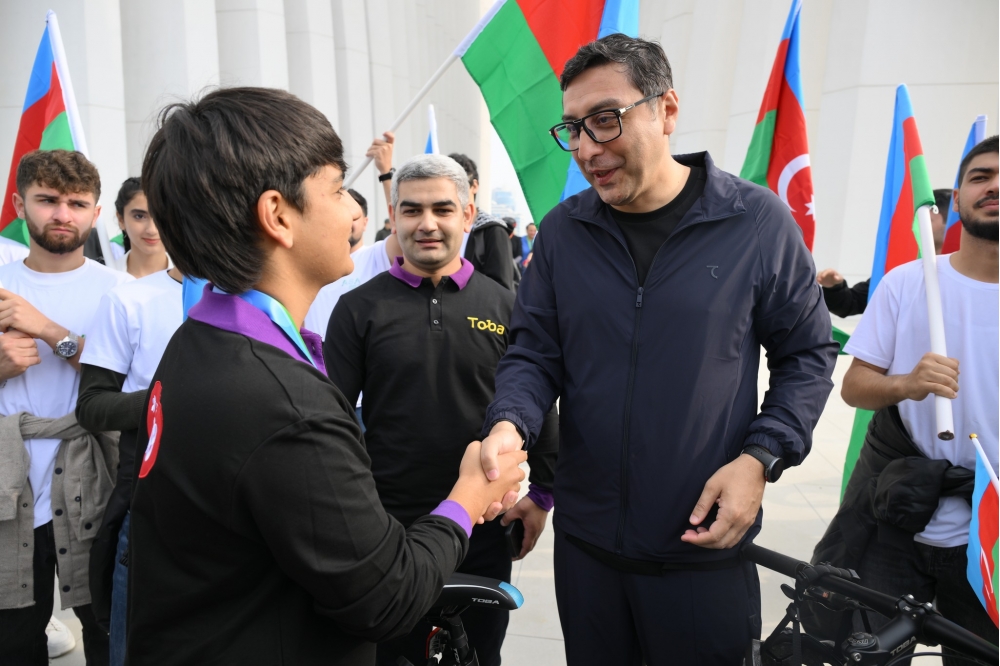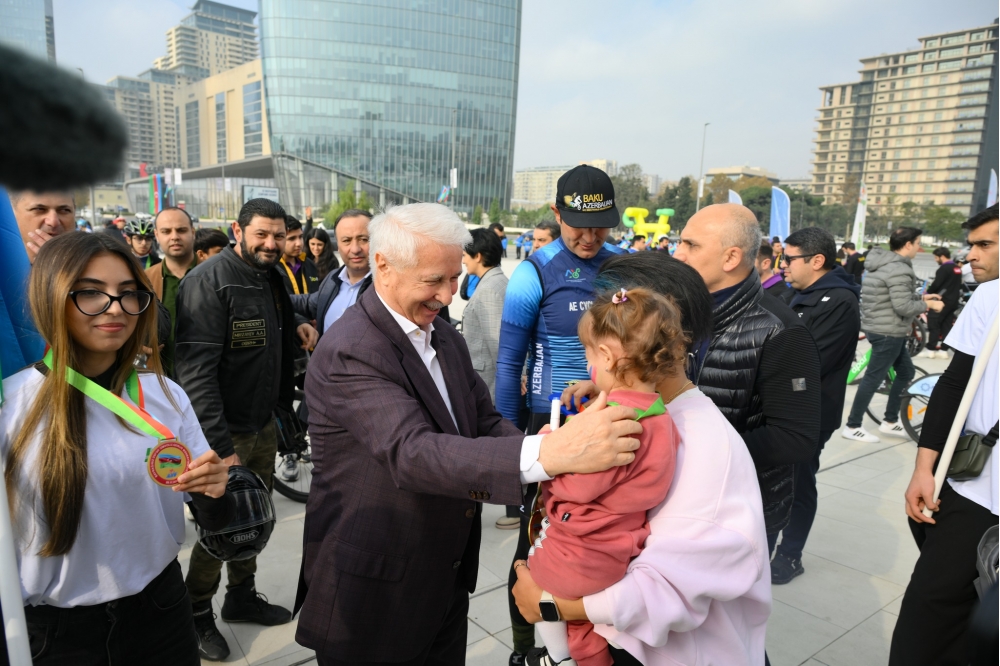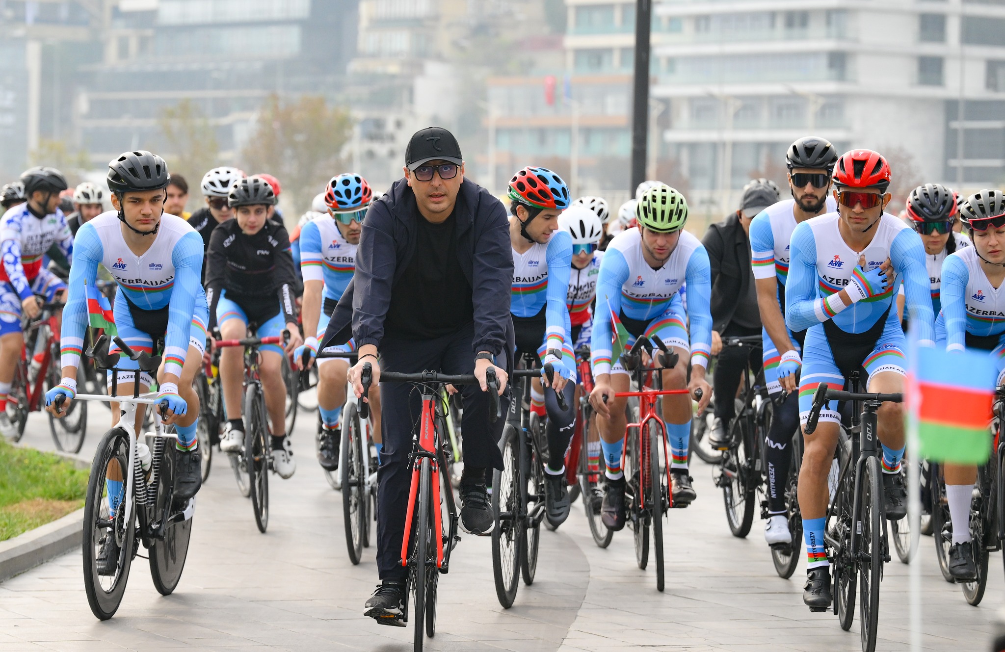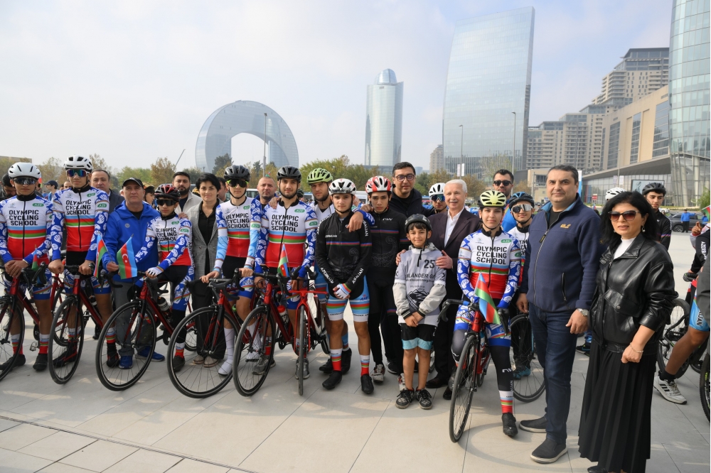 “İki sahil” xəbər verir ki, Dövlət Bayrağı Meydanından start götürən veloyürüşdə gənclər və idman naziri Fərid Qayıbov da öz velosipedi ilə iştirak edib.