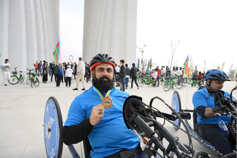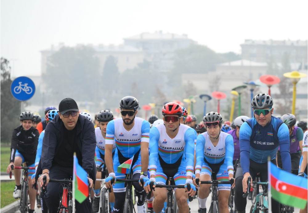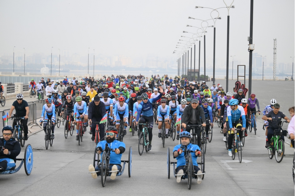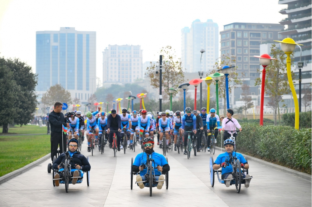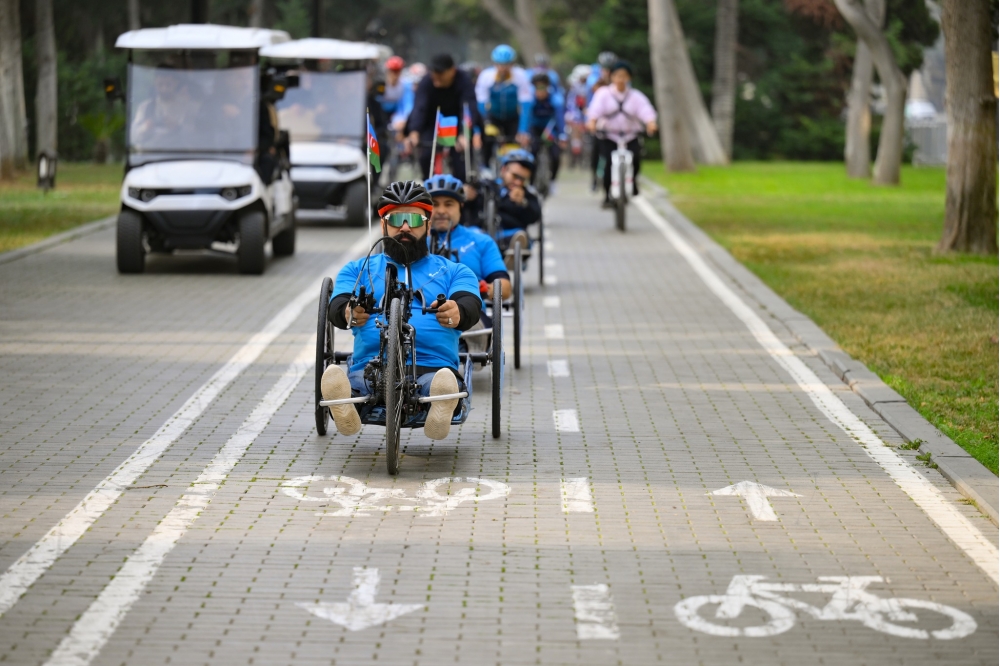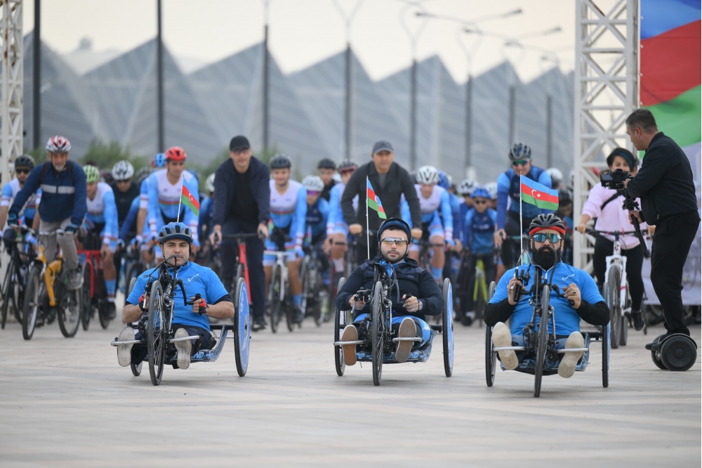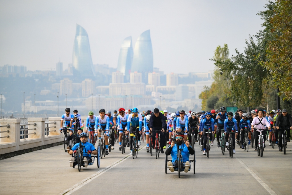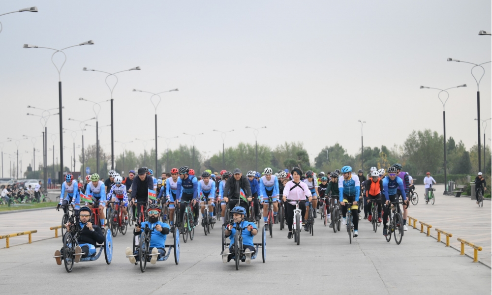 300-dən artıq peşəkar və həvəskar velosipedçi, o cümlədən paravelosipedçilər Dənizkənarı Bulvar ərazisindəki velosiped yolları ilə Zəfər Parkına doğru hərəkət ediblər.