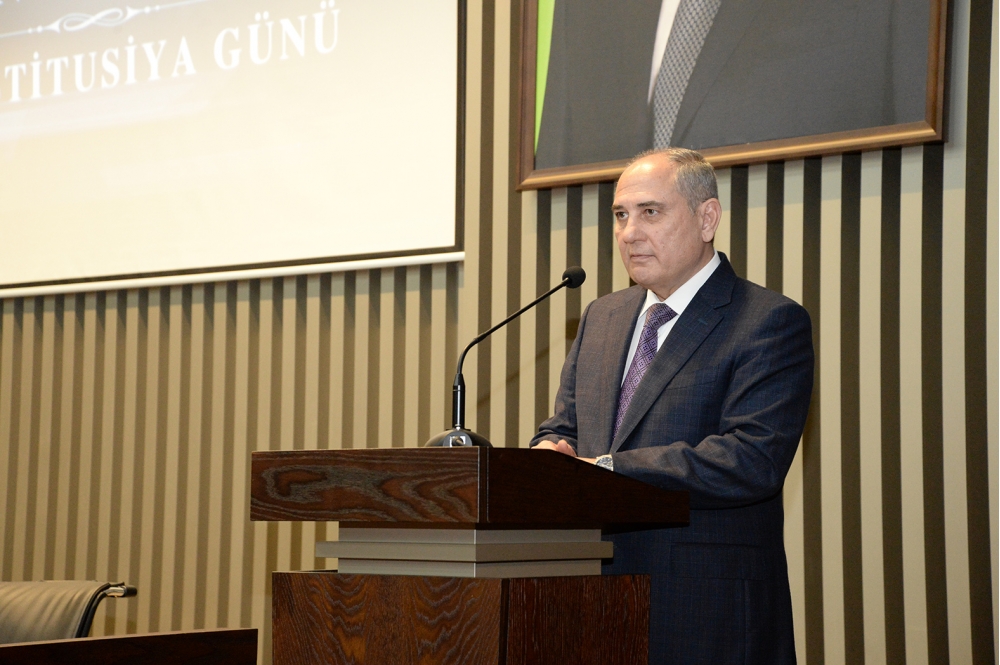 Çıxış edən iştirakçılar bildiriblər ki, müstəqil Azərbaycan Respublikasının Konstitusiyası ölkəmizdə demokratik, hüquqi, dünyəvi dövlət quruculuğu prosesinə hüquqi baza yaratmış və onun inkişafına güclü təkan vermişdir. Azərbaycanın müasir tarixində dövlətçilik ənənələrinin bərpası və möhkəmləndirilməsi məhz Ümummilli Lider Heydər Əliyevin adı ilə bağlıdır. Onun cəsarətlə həyata keçirdiyi əsaslı islahatlar respublikamızı inkişaf yoluna çıxarmaqla yanaşı, qanunun aliliyini təmin edən, hüquqi, dünyəvi dövlət quruculuğuna yol açan yeni milli Konstitusiyanın hazırlanmasına və qəbuluna şərait yaratmışdır. 1995-ci ildə qəbul olunmuş Azərbaycan Respublikasının Konstitusiyası müasir dövlətçiliyimizin hüquqi əsaslarını təşkil edən, ölkənin müstəqilliyini hüquqi cəhətdən təsdiqləyən fundamental sənəd kimi tarixə düşmüşdür. Ulu Öndər Heydər Əliyevin bilavasitə rəhbərliyi ilə hazırlanmış bu sənədin hər bir maddəsi onun Azərbaycanın gələcəyi ilə bağlı strateji baxışlarının təcəssümüdür. Azərbaycan Respublikasının Prezidenti cənab İlham Əliyevin uğurlu daxili və xarici siyasəti nəticəsində Konstitusiyada təsbit olunan bütün müddəaların təmin olunduğu diqqətə çatdırılıb. Vurğulanıb ki, İlham Əliyevin 2003-cü ildə ali vəzifəyə seçildiyi dövrdən başlayaraq qarşısına qoyduğu strateji hədəf Ali Qanunumuzun müddəalarının bütün ölkə ərazisində təmininə yönəlmiş, Vətən müharibəsi və ardınca antiterror əməliyyatı ilə Azərbaycan bütün ərazisində suverenliyini tam bərpa etmişdir.