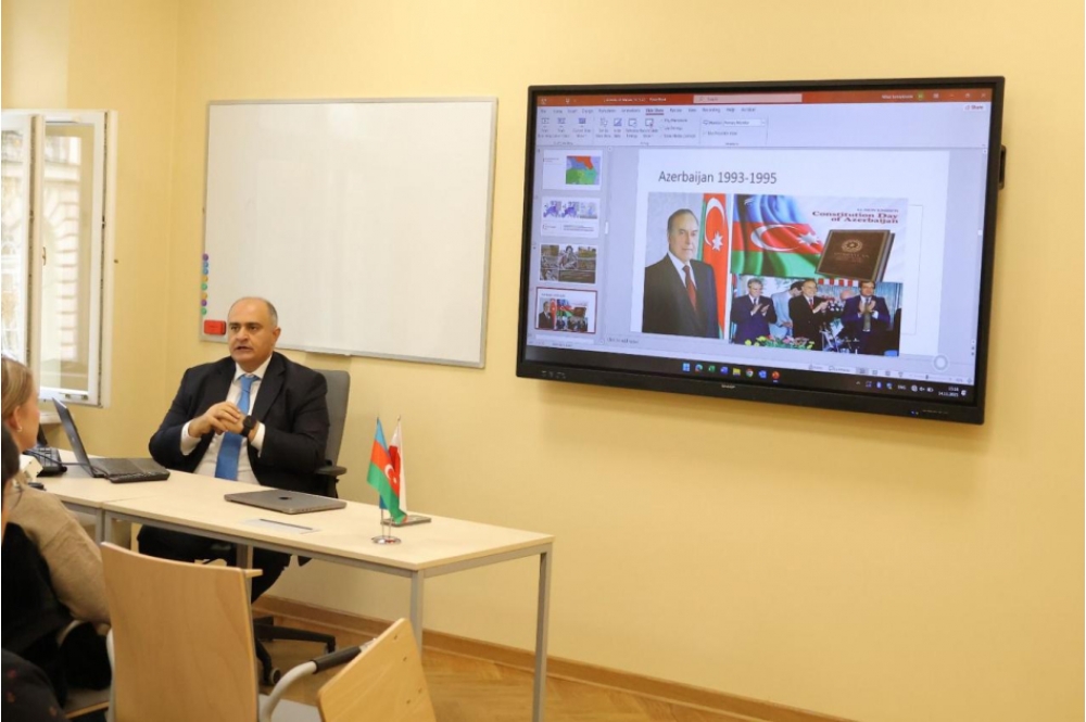BSU-dan “İki sahil”ə bildirilib ki, rektor Anar Nağıyev mühazirəsində Zəfər Günü, Konstitusiyamızın 30 illiyi və Polşanın Müstəqillik Günü kimi əlamətdar tarixlərin önəmini vurğulayıb.