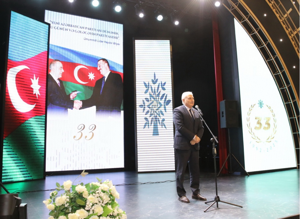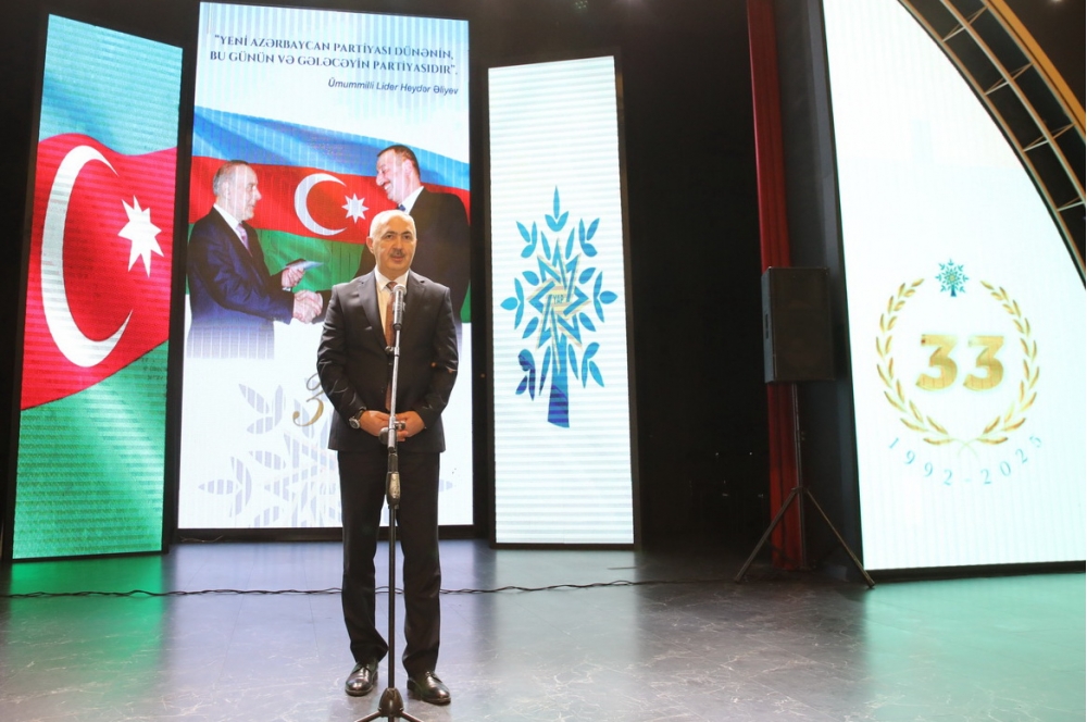 Diqqətə çatdırılıb ki, partiyanın keçdiyi 33 illik şərəfli yol xalq-iqtidar birliyinin möhkəm təmələ əsaslandığını, sarsılmaz və əbədi olduğunu təsdiqləyib. Bu gün sürətlə inkişaf edən müstəqil dövlətimizi uğurlu inkişafa aparan bu yolda hər bir Azərbaycan vətəndaşı Yeni Azərbaycan Partiyasının Sədri, Prezident İlham Əliyevin siyasi kursunu dəstəkləyir və böyük əzmlə dövlətin, xalqın, vətənin mənafeyi naminə səy göstərir.