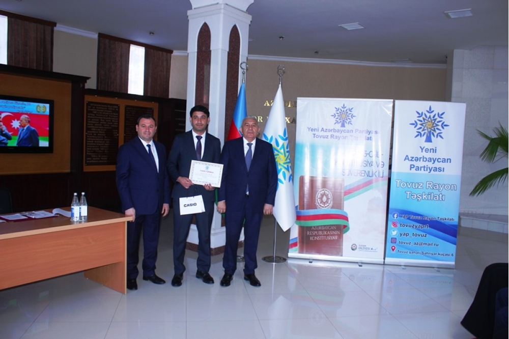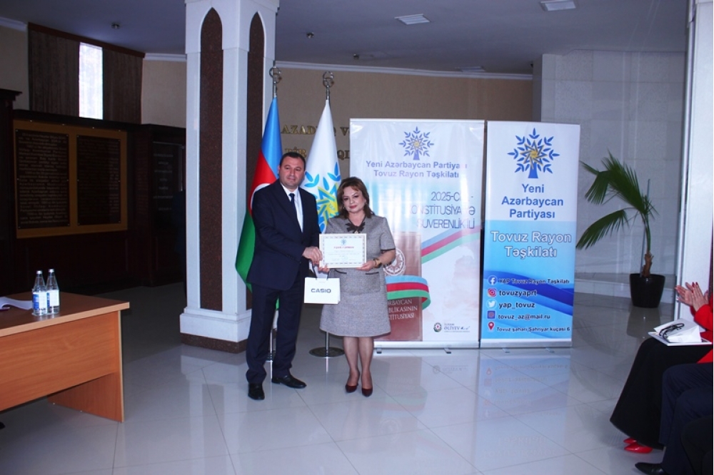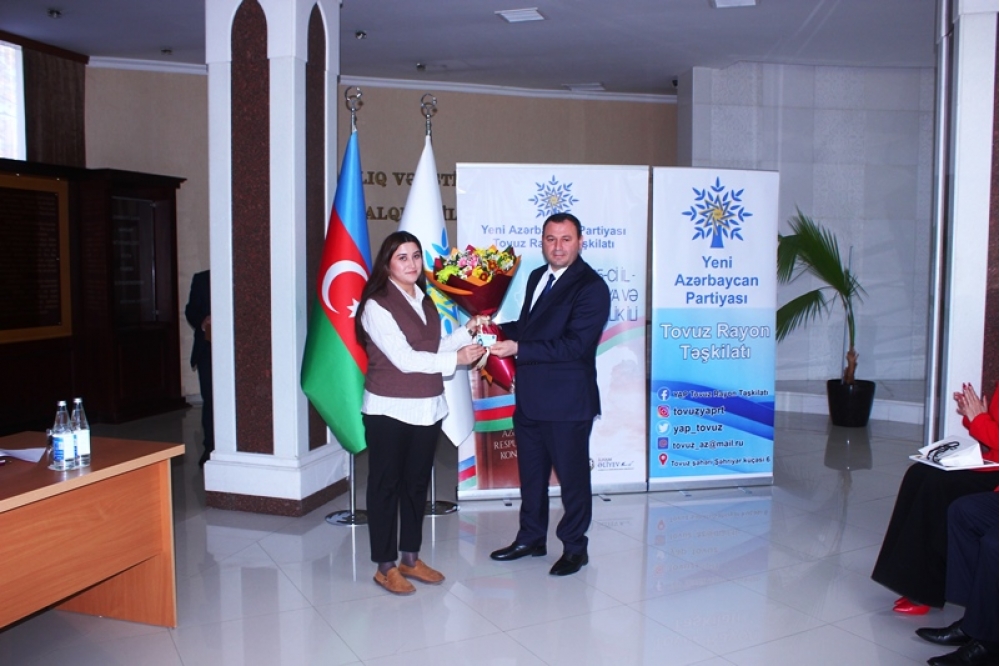 Tədbiri açan Tovuz Rayon İcra Hakimiyyətinin başçısı Məmməd Məmmədov YAP-ın 33 illik fəaliyyət yolundan danışaraq bildirib ki, partiyanın yarandığı müddət ərzində Azərbaycan möhkəmlənmə, qüdrətlənmə və inkişaf dövrünü yaşamışdır. O qeyd edib ki, Yeni Azərbaycan Partiyası siyasi mübarizə meydanında bu illər ərzində liderliyini qoruyub və dövlətçiliyimizin möhkəmlənməsinə əvəzsiz töhfələr verib.