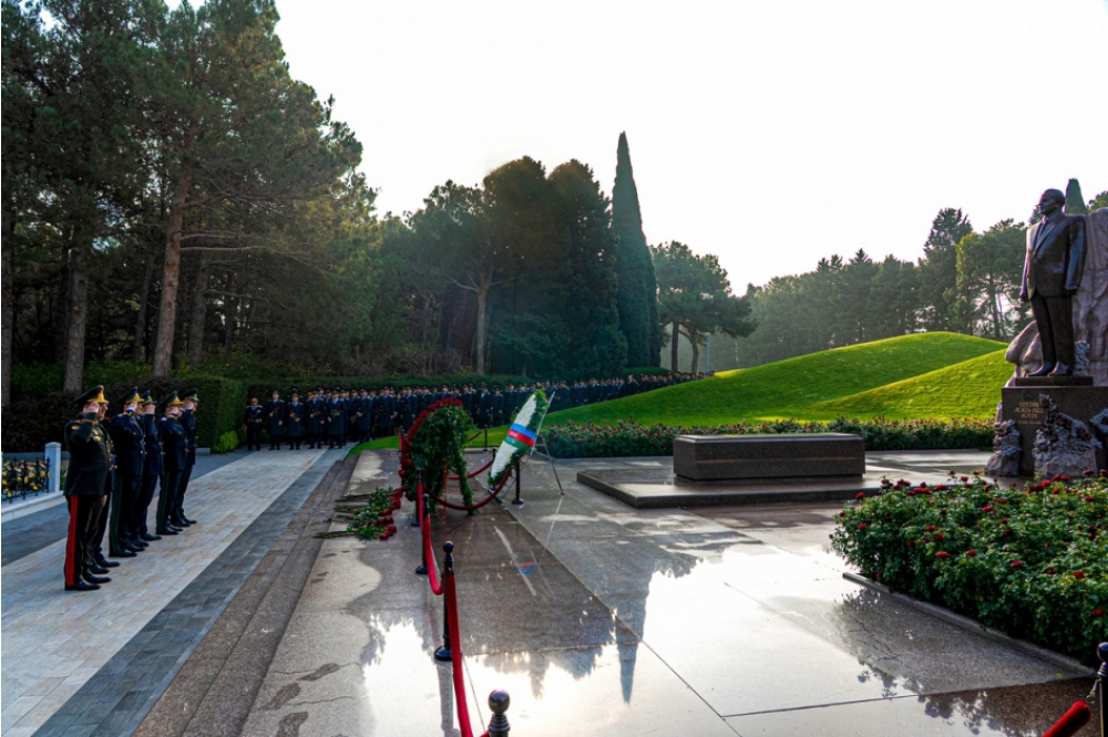 Nazirliyin mətbuat xidmətindən “İki sahil”ə verilən məlumata görə, mərasimdən öncə Fəxri xiyabanda Ümummilli Lider Heydər Əliyevin xatirəsi ehtiramla anılıb, məzarı önünə gül dəstələri qoyulub. Daha sonra Şəhidlər xiyabanında Azərbaycanın müstəqilliyi və ərazi bütövlüyü uğrunda canlarını fəda etmiş Vətən övladlarının xatirəsi yad edilib, məzarları önünə tər güllər düzülüb.