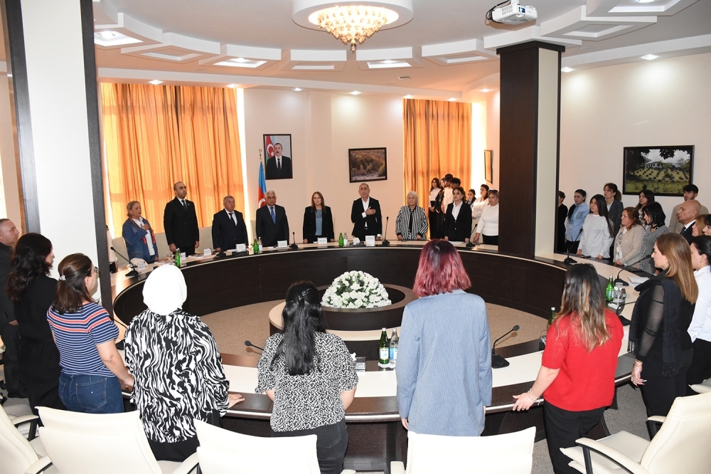 Azərbaycan Respublikasının Dövlət Himninin səsləndirilməsi ilə başlanan tədbirdə Ulu Öndər Heydər Əliyevin və Azərbaycanın ərazi bütövlüyü uğrunda canlarından keçmiş şəhidlərin xatirəsi bir dəqiqəlik sükutla yad edilib.