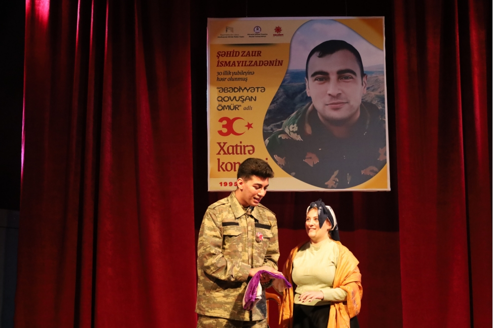 Daha sonra bəstəkar müğənni Ruslan Səfəroğlu tərəfindən şəhid Zaur İsmayılzadəyə ithaf edilən musiqi nömrəsi səsləndirilib. Tədbirdə Sazın, Sözün Butası təşkilatının sədri, Gürcüstanın “Şərəf” ordenli şairi Səadət Buta, Xətai Rayon Ağsaqqallar Şurasının sədri və şəhid atası Mürvət Əsgərov, Şəhid Analarına Dəstək İctimai Birliyinin sədri, şəhid anası Ceyran ana, Əməkdar Mədəniyyət işçisi, müğənni, aşıq Solmaz Kosayeva, vətənpərvər jurnalist, yazıçı, şəhid Zaur İsmayılzadə həsr olunmuş "Burğa tələsi" kitabının müəllifi Ötərxan Eltac, 1- ci Qarabağ müharibəsinin qanlı tarixinin canlı şahidi, şair Aidə Şirinova və digər çıxışçılar Zaur İsmayılzadənin döyüş yolundan, gənclik üçün örnək olan mübarizə və vətənpərvərlik əzmkarlığından söz açıblar. Tədbirdə rejissor Nail Naiblinin şəhid Zaur İsmayılzadə üçün hazırladığı xüsusi videoçarx nümayiş etdirilib. Videoçarxın ardınca “Əbədi Tədbirlər Birliyi”nin rəhbəri Polad Ağa İbrahimov tərəfindən hazırlanmış 20 dəqiqəlik səhnə tamaşası təqdim olunub. Tamaşa Zaurun həyatı, ailəsi, döyüş yolunu əks etdirərək salonda duyğulu anlar yaşadıb.
