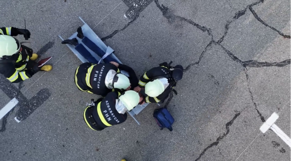 Baş vermiş şərti yanğın yerinə operativ çatan yanğından mühafizə bölmələri obyektin qüvvələri ilə qarşılıqlı fəaliyyətdə işçilərin “təhlükəli ərazidən” təxliyə edilməsi, “yanğın” yerində çevik kəşfiyyatın aparılması və “yanğının söndürülməsi” əməliyyatını yerinə yetiriblər.
