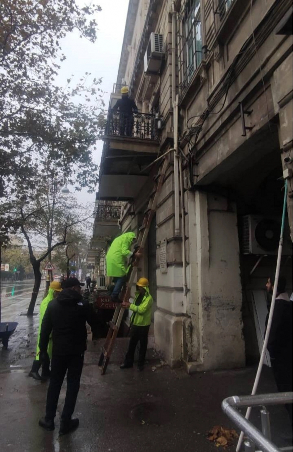 Bakı şəhəri Səbail rayonu Rəşid Behbudov küçəsi 12 ünvanında yerləşən 3320 inventar nömrəli yerli əhəmiyyətli memarlıq abidəsi olan binanın ikinci mərtəbəsində yerləşən mənzilin eyvanı təbii təsirlərdən uçub.