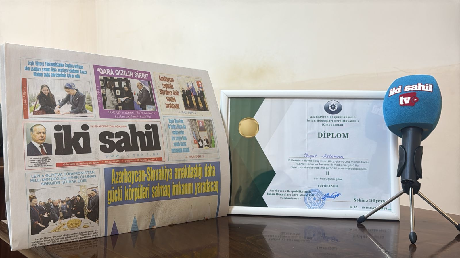 “İki sahil” qəzetinin əməkdaşı Yaqut Ağaşahqızı İnsan Hüquqları üzrə Müvəkkilin (Ombudsman) elan etdiyi yazı müsabiqəsində qalib olub.
