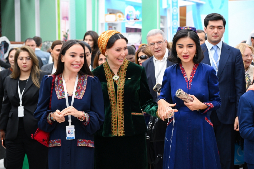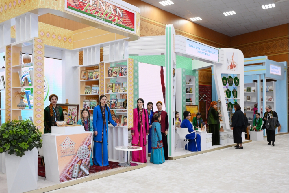 Qonaqlar əvvəlcə Türkmənistanın zəngin mədəni irsini və bugünkü uğurlarını nümayiş etdirən sərgi ilə tanış olublar. Ekspozisiyada ölkənin müxtəlif sahələrdə uğurlarını əyani təqdim edən, qadınların dövlət quruculuğu, iqtisadiyyat, elm, təhsil və səhiyyədə fəal iştirakını göstərən stendlər də yer alıb.