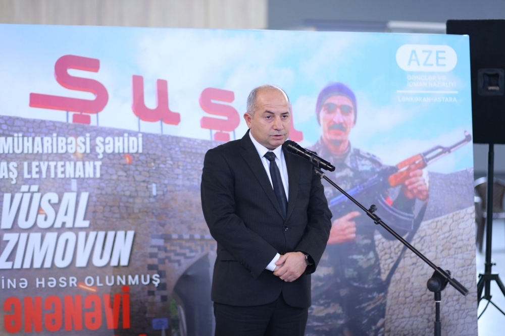 Məlumat üçün bildirək ki, cənub mirvarisi Lənkəranın Yuxarı Nüvədi kəndində halal bir ziyalı ocağında boya-başa çatan, ata-ananın yeganə övladı olan Vüsal Kazımov iki ali təhsil alıb, bir müddət Lənkəran şəhər Uşaq-Gənclər İdman Məktəbinin direktoru vəzifəsində çalışıb. Həyatı dərk edən gündən xalqına, doğma Azərbaycana sevdalanan qeyrətli oğul İkinci Qarabağ müharibəsi başlanan günü ana Vətənin harayına könüllü olaraq birincilər sırasında səs verib. Baş leytenant əlində silah ən qaynar nöqtələrdə yağıya qarşı savaşıb. Misilsiz şücaət göstərməklə neçə-neçə odlardan, alovlarda zəfərlə çıxıb. Şuşanın azad edilməsi uğrunda gedən döyüşlərdə qəhrəmanlıqla şəhadətə yüksəlib.