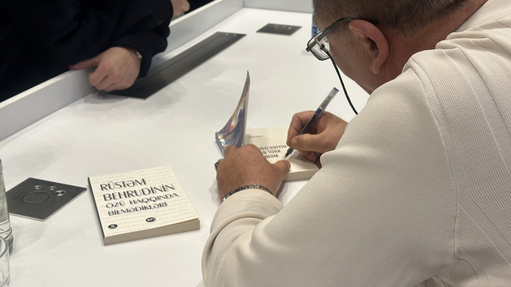 Sonda Rüstəm Behrudi kitablarını imzalayaraq tələbələrə hədiyyə edib.