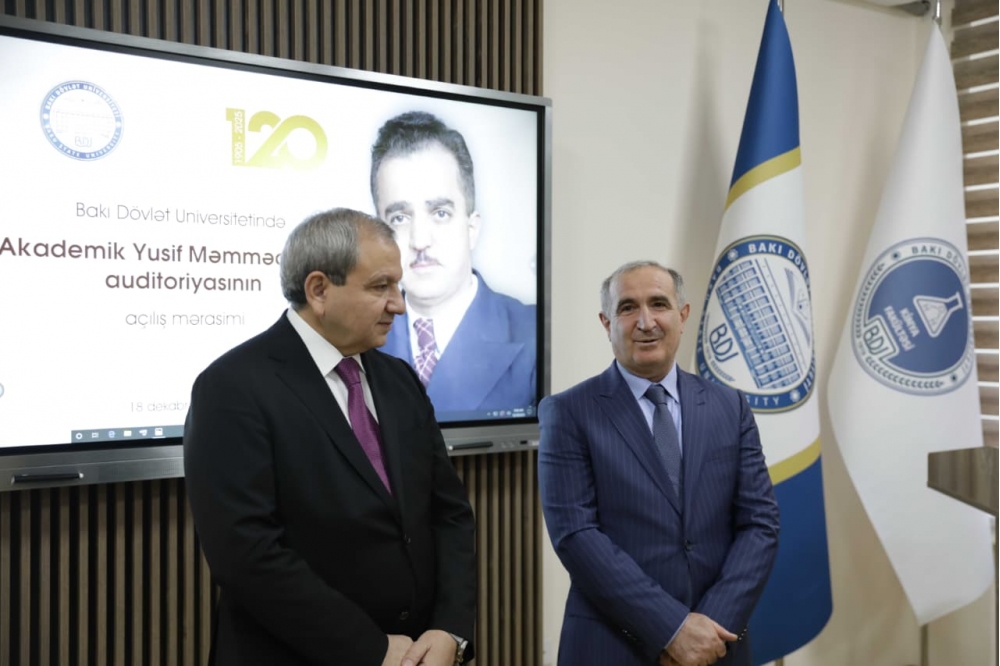 Bakı Dövlət Universitetinin (BDU) Kimya fakültəsində dünya şöhrətli alim, akademik Yusif Məmmədəliyevin anadan olmasının 120 illik yubileyi münasibətilə “Akademik Yusif Məmmədəliyev auditoriyası” açılıb.