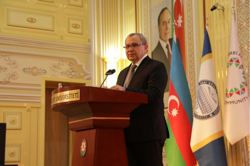 Mərasimdə çıxış edən BDU-nun rektoru Elçin Babayev bildirib ki, müasir Azərbaycan dövlətçiliyinin inkişaf mərhələsini səciyyələndirən əsas cəhətlərdən biri Prezident İlham Əliyevin həyata keçirdiyi strateji sülhyaratma siyasətidir. Suverenlik konsepsiyası və tarixi ədalətin bərpasına yönəlmiş Qərbi Azərbaycana qayıdış ideyası da dövlət siyasətinin əsas istiqamətlərindəndir. Qərbi Azərbaycan məsələsi həm Ermənistan-Azərbaycan münaqişəsinin aktiv fazasında, həm də tarixi Zəfərimizdən sonrakı mərhələdə Prezident İlham Əliyevin sülh ritorikasında dönə-dönə müraciət etdiyi və ortaya qətiyyətli mövqe qoyduğu bir mövzudur. Azərbaycan dünya birliyində artıq yalnız enerji resurslarına malik ölkə kimi deyil, öz milli maraqlarını qorumağı bacaran, beynəlxalq hüquqa əsaslanan və strateji düşünən ölkə kimi qəbul olunur: “Dövlət başçımız Qərbi Azərbaycana qayıdış məsələsini revizionist deyil, hüquqi-humanitar problem kimi formalaşdırıb. Bu mövqe sülh yolu ilə qayıdış, beynəlxalq hüquq və insan haqları çərçivəsində, ləyaqətli qayıdış, tarixi aktlara və sənədlərə əsaslanaraq qayıdış kimi üç əsas prinsip üzərində qurulub. Bu, təkcə tarixi yaddaş problemi deyil, artıq həm də konstitusion hüquqların bərpası məsələsidir. Prezident İlham Əliyevin mövqeyi yalnız tarixi-faktoloji deyil, həm də humanitar hüquq aspekti ilə bağlıdır”.