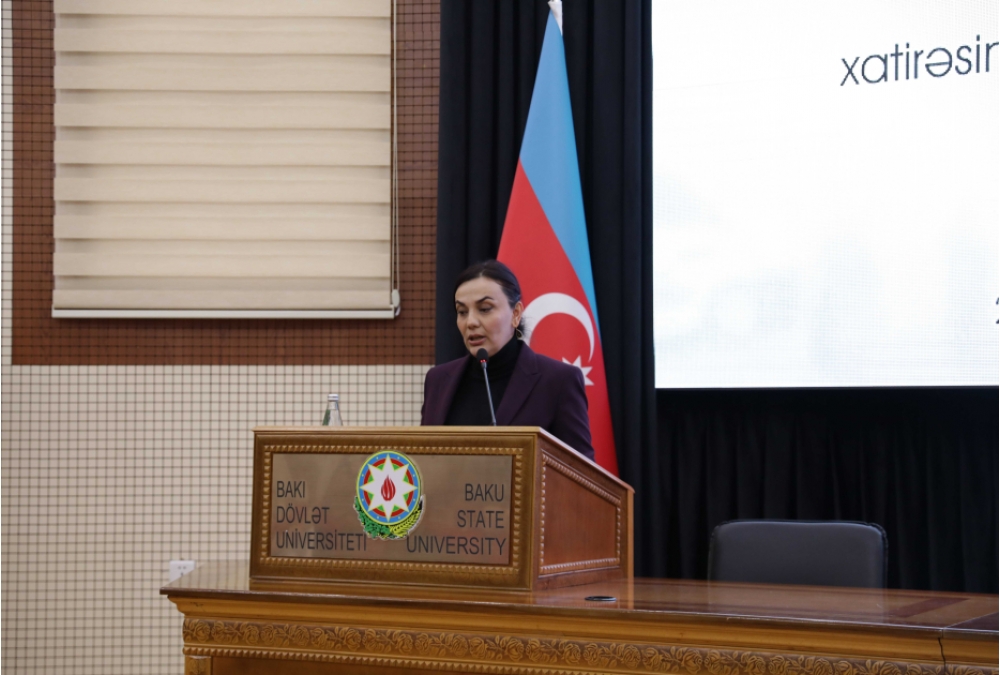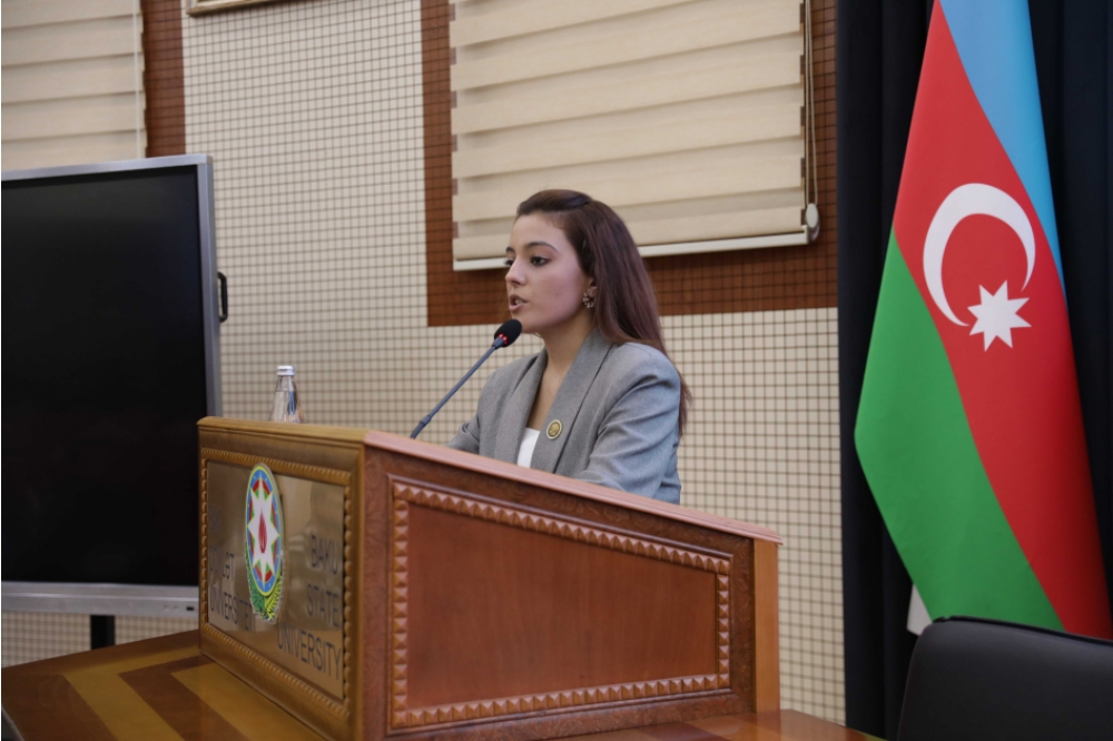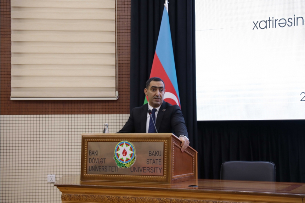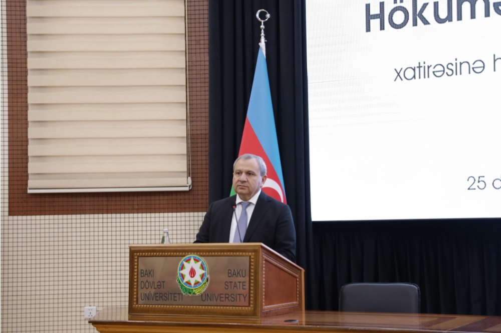 Əvvəlcə qəza qurbanlarının xatirəsi bir dəqiqəlik sükutla yad edilib. BDU-nun rektoru Elçin Babayev AZAL-a məxsus təyyarənin qəzaya uğramasını təkcə hadisə deyil, hər bir azərbaycanlını sarsıdan acı bir itki olduğunu deyib. O, BDU ailəsinin üzvü olan Hökumə Əliyevanın itkisinin ikiqat ağır olduğunu bildirib: “Hökumə Əliyeva Hüquq fakültəsinin məzunu və doktorantı kimi hüquqa sadəcə peşə kimi deyil, ədalətə xidmət vasitəsi kimi baxırdı. Elmi axtarışları, dissertasiya işi, müəllimlərinin və dostlarının xatirələrində qalan prinsipial mövqeyi bunu açıq şəkildə göstərir. Biz gələcəyin alimini, bacımızı, həmvətənimizi, həm də bir qəhrəmanımızı itirdik. Qəhrəmanlıq heç də həmişə silah götürüb vuruşmaq deyil. Təyyarə qəzası zamanı Hökumə Əliyevanın mərdliyi, cəsarəti, öz peşə borcunu məsuliyyətlə yerinə yetirməsi qəhərəmanlıq idi. Bu çətin gündə Hökumə Əliyevanın ailəsinə dərin hüznlə başsağlığı verir, səbir və güc arzulayıram. O, daim BDU ailəsinin üzvü kimi qalacaq və qəlbimizdə yaşayacaq”.