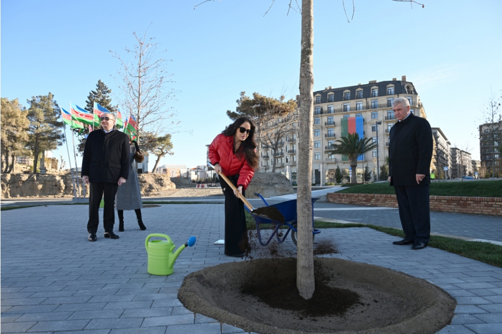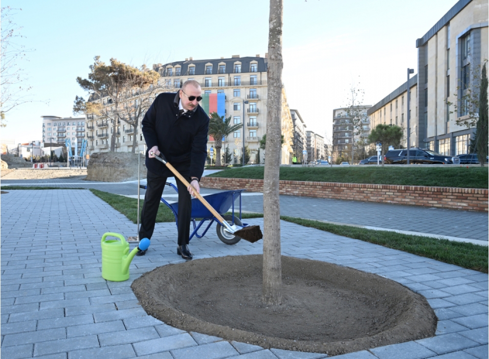 Prezident İlham Əliyev, birinci xanım Mehriban Əliyeva və qızları Palıd meydanı parkında ilk palıd ağaclarını əkdilər.